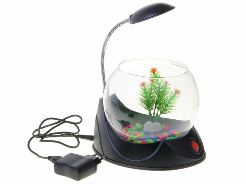 | Плюсы: | Компактный, для 2х рыбок самое то, можно поставить на рабочий стол, в комплекте камешки и искусственные водоросли |
