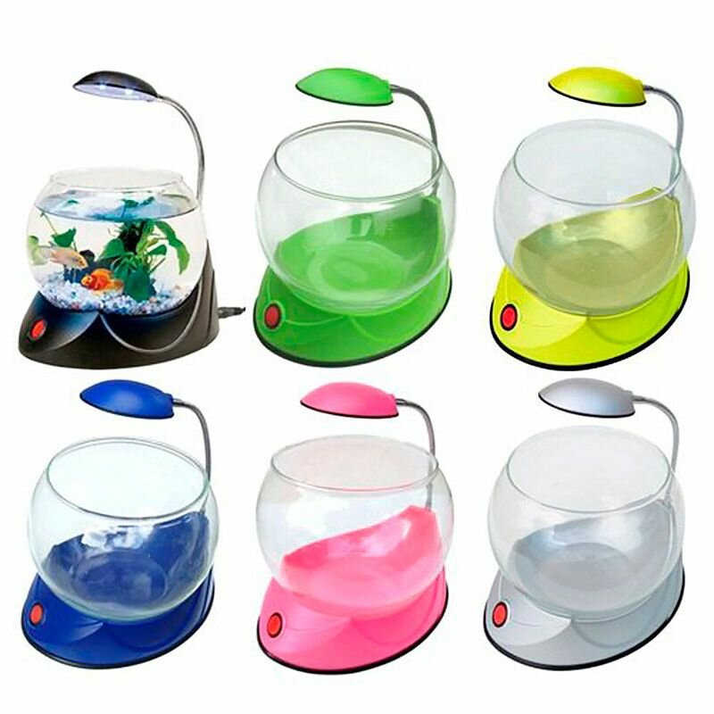 Круглый аквариум для рыбок с LED-подсветкой и грунтом, 2,5 л серебро
