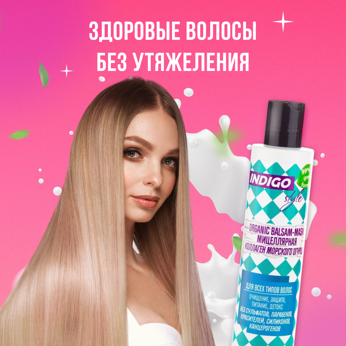Купить Indigo Style Органик бальзам-маска для волос мицеллярная, увлажняющая, профессиональная, без сульфатов, парабенов и красителей 200 мл