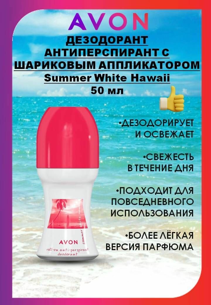 Купить AVON Дезодорант-антиперспирант с шариковым аппликатором Summer White Hawaii, 50 мл