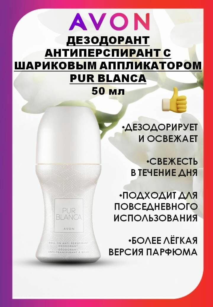 Купить AVON Дезодорант-антиперспирант с шариковым аппликатором Pur Blanca, 50 мл