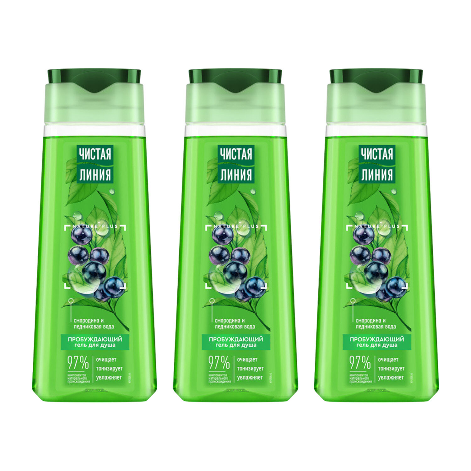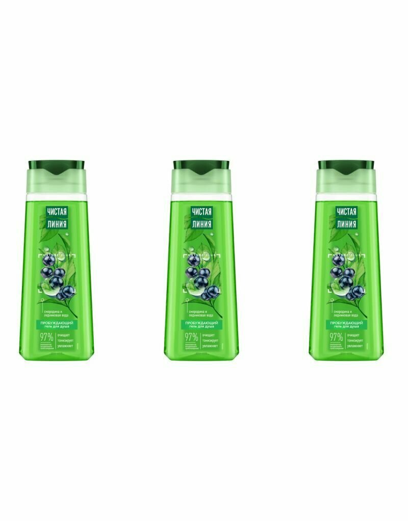 Купить Гель для душа Чистая линия пробуждающий на 100% натуральной основе, смородина и ледниковая вода 250 мл ( 3 шт )