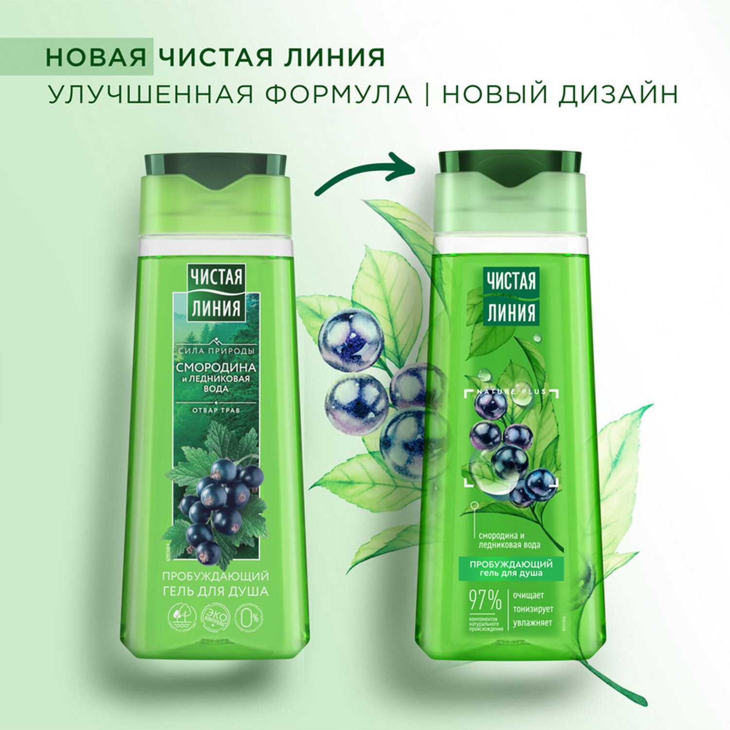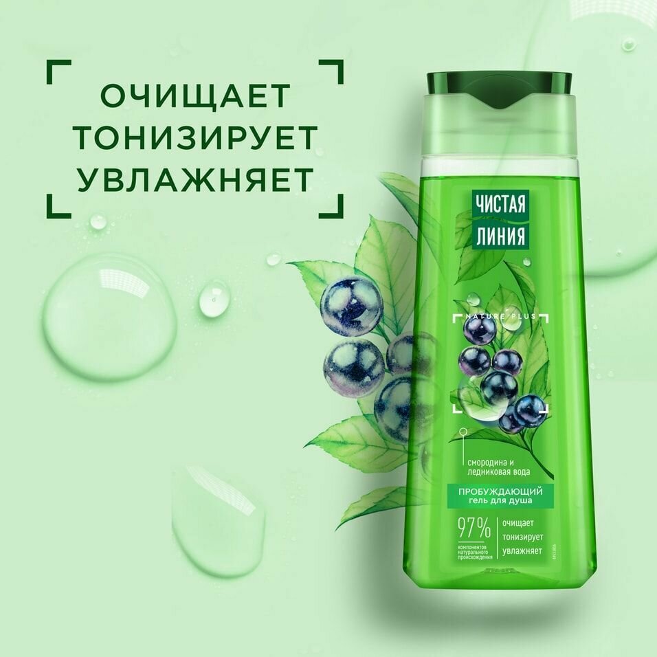 Чистая Линия гель для душа пробуждающий Смородина и ледниковая вода, 750 мл