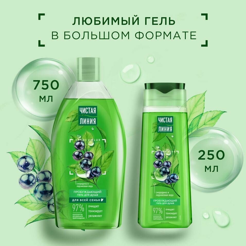 Чистая Линия Гель для душа пробуждающий Смородина и ледниковая вода, 750 мл, Чистая Линия