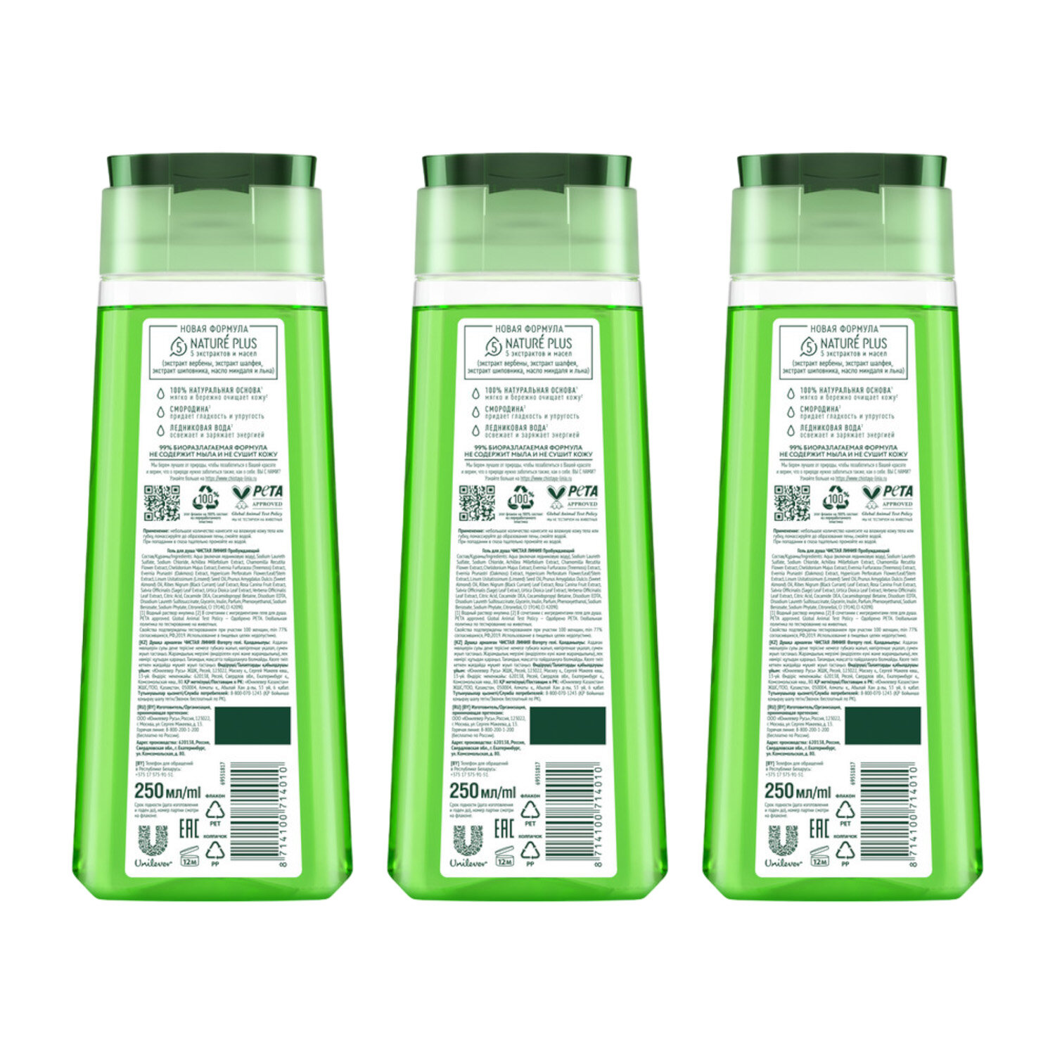 СохранитьГель для душа Чистая линия пробуждающий на 100% натуральной основе, смородина и ледниковая вода 250 мл ( 3 шт ) интересное: