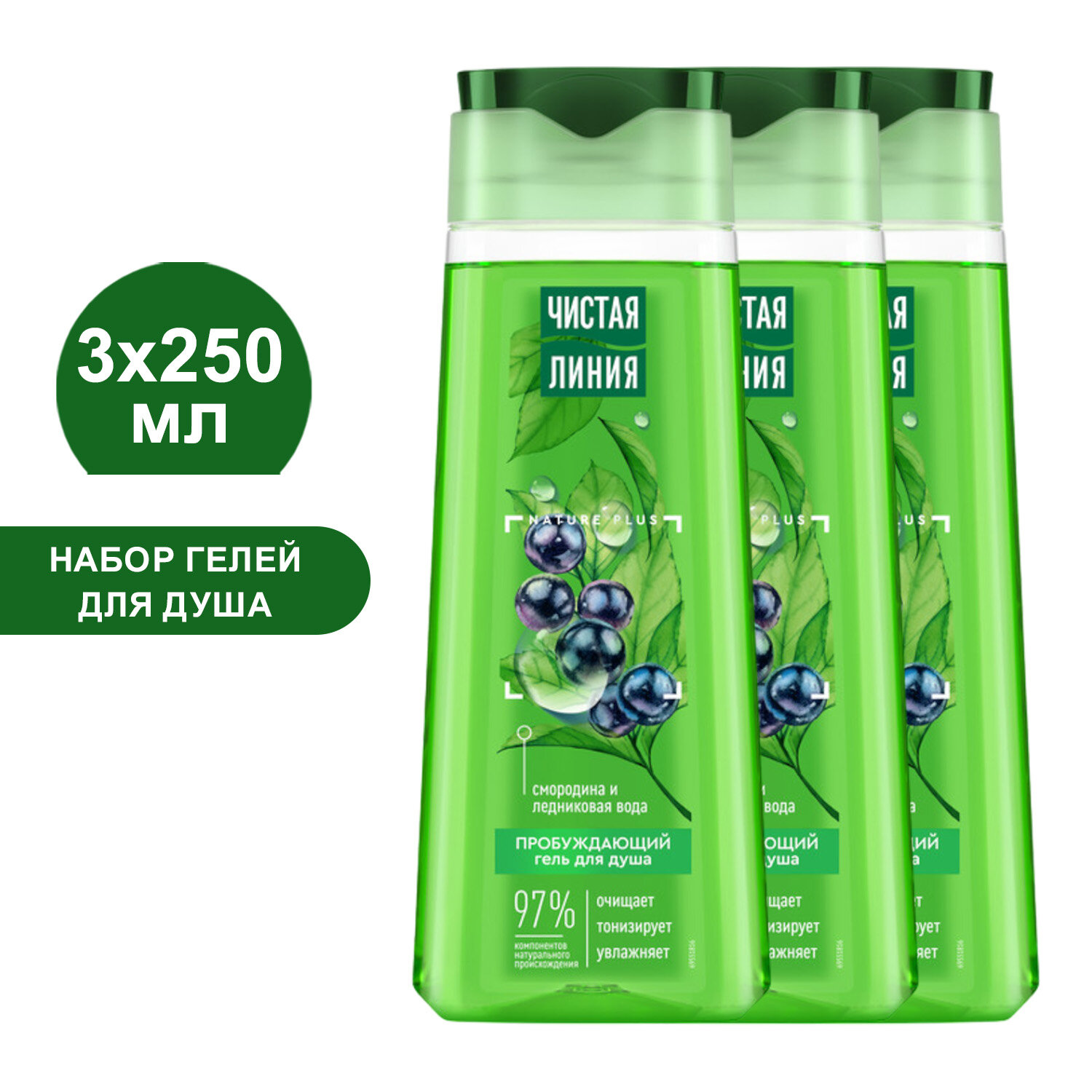 Чистая линия Гель для душа пробуждающий 250 мл (смородина+ледниковая вода) (3 шт в наборе)