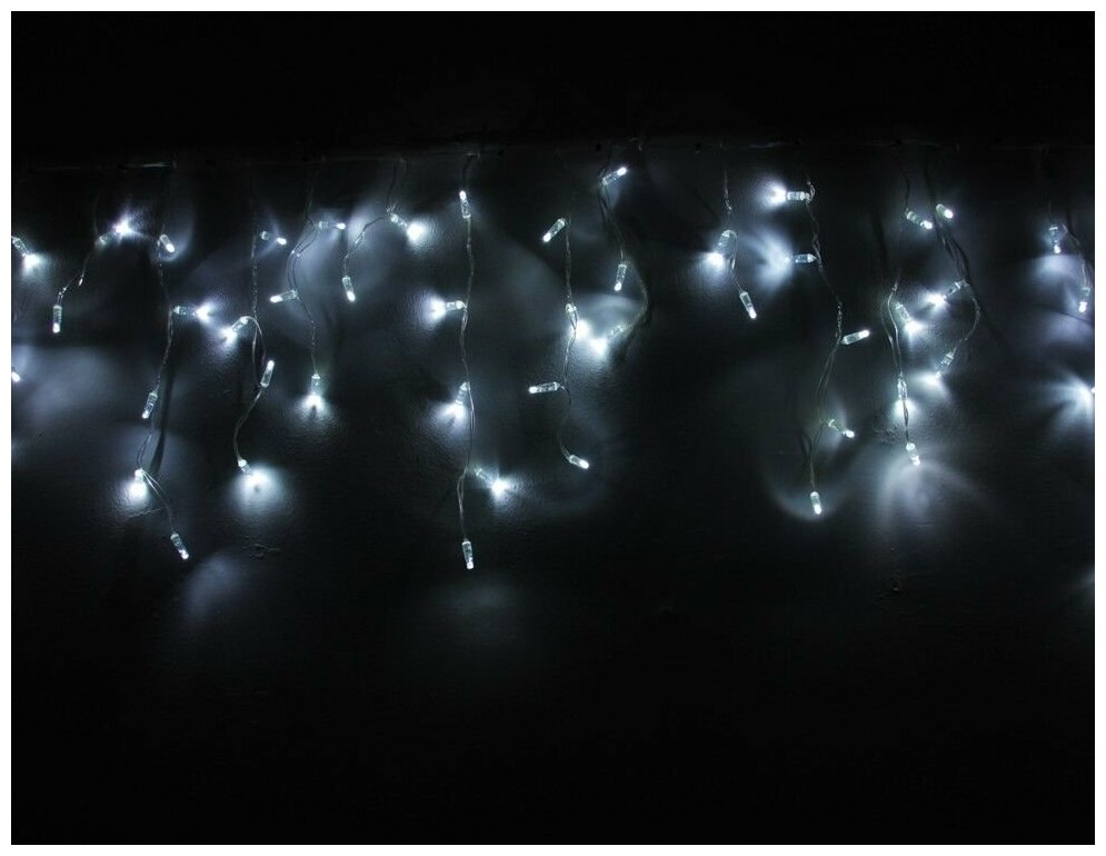 Светодиодная бахрома, 112 холодных белых LED, влагозащитный колпачок, 3х0.5 м, коннектор, прозрачный провод, уличные, Rich LED