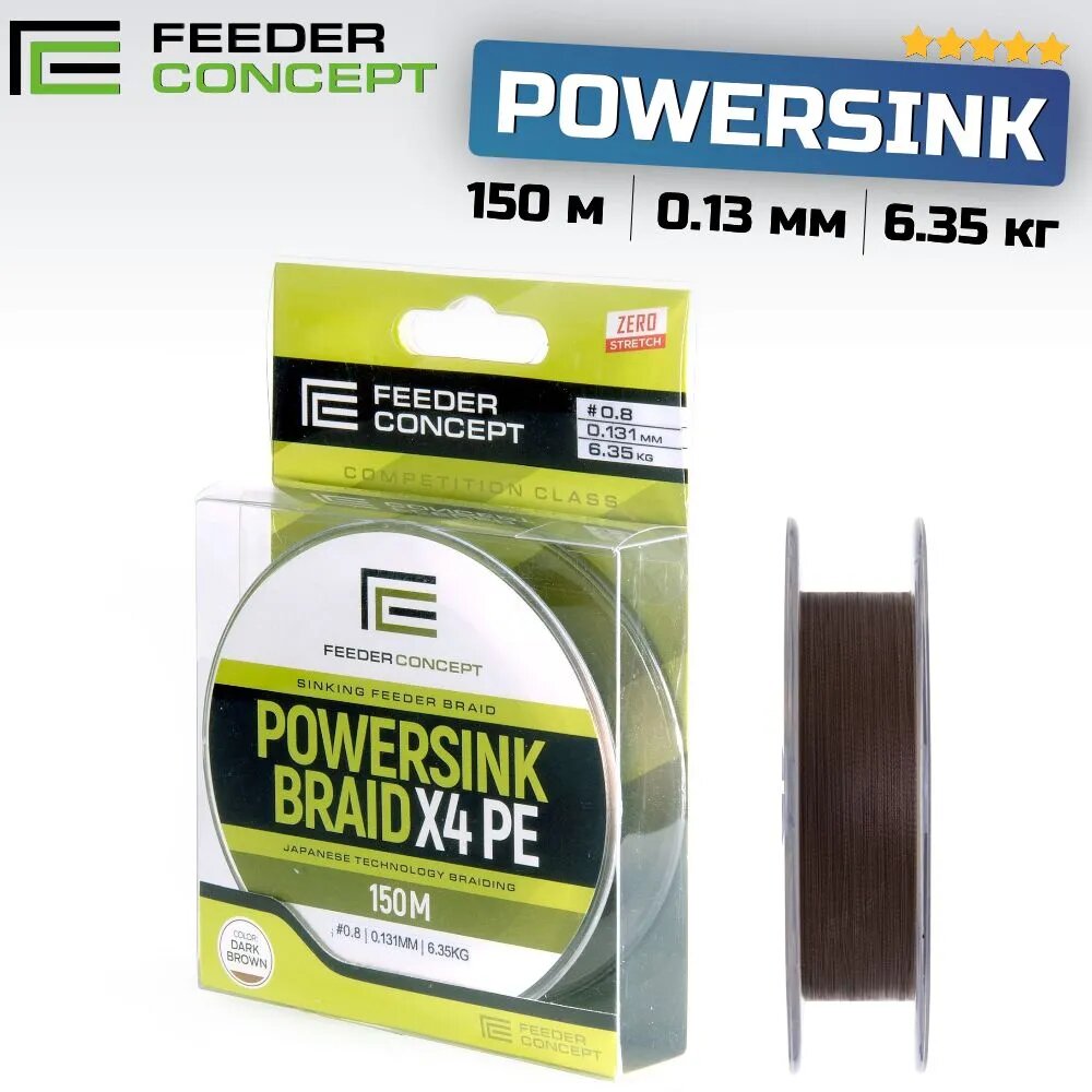 Плетеный шнур для рыбалки Feeder Concept Powersink Braid X4 #1 0,153мм 150м (dark brown)