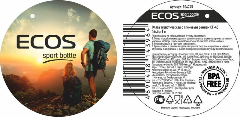 Фляга туристическая ECOS Flask CF-45, 1 литр, с плечевым ремнем интересное: