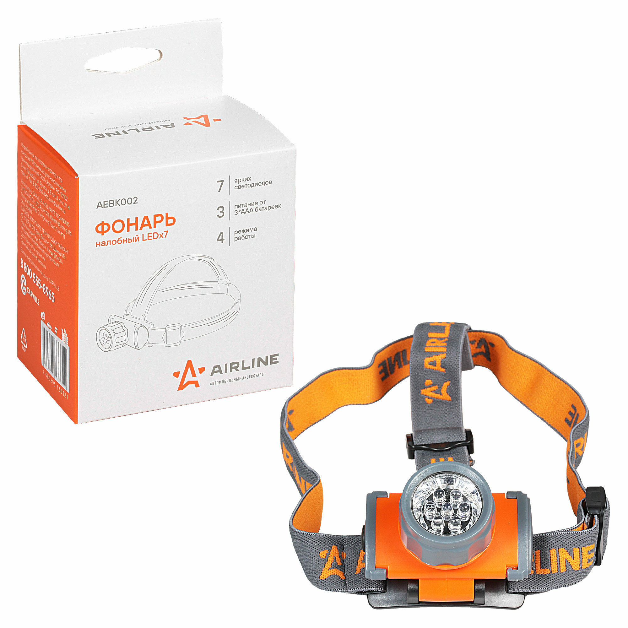 Фонарь Налобный На Батарейках Ledx7! AIRLINE арт. AEBK003