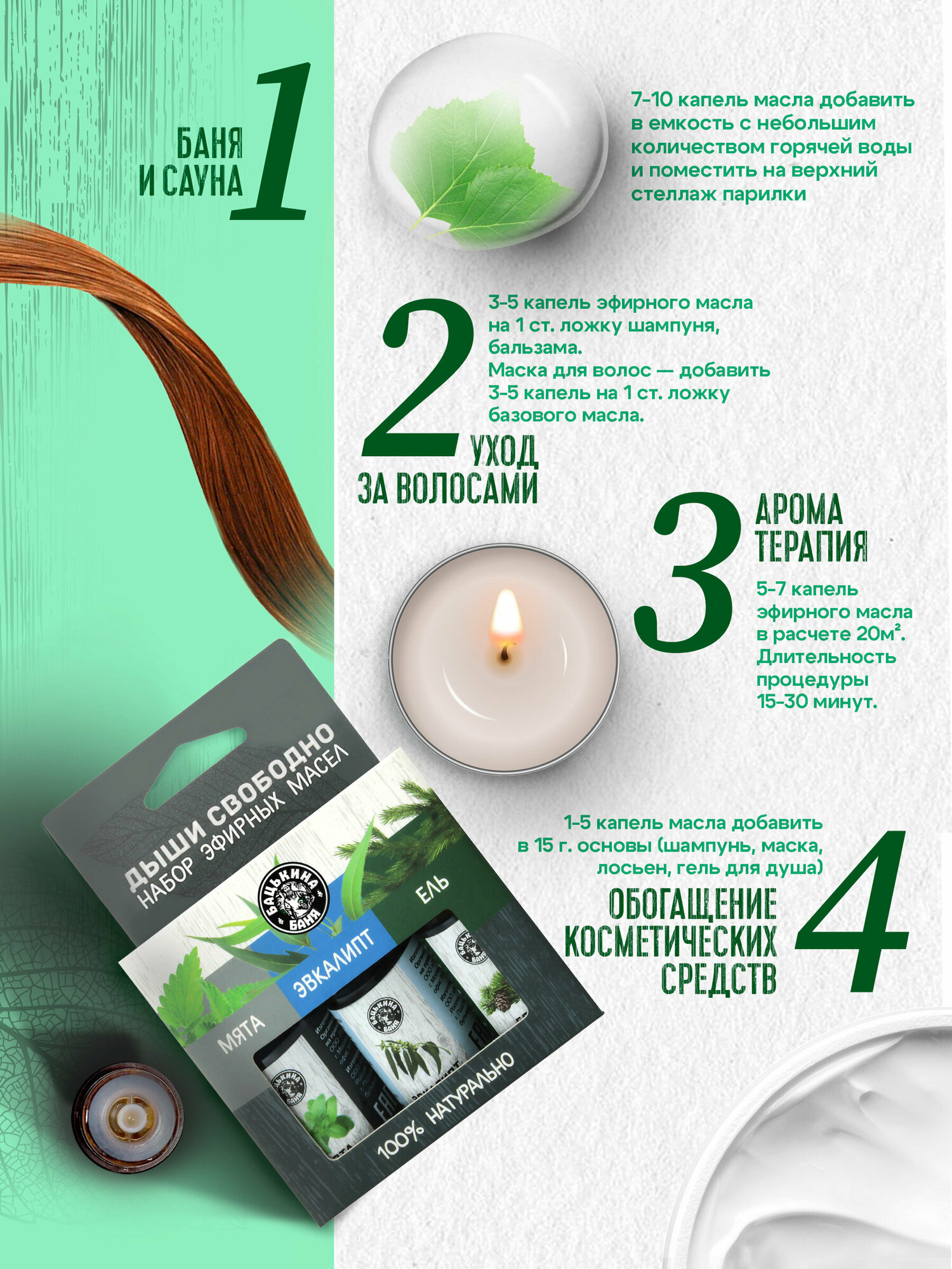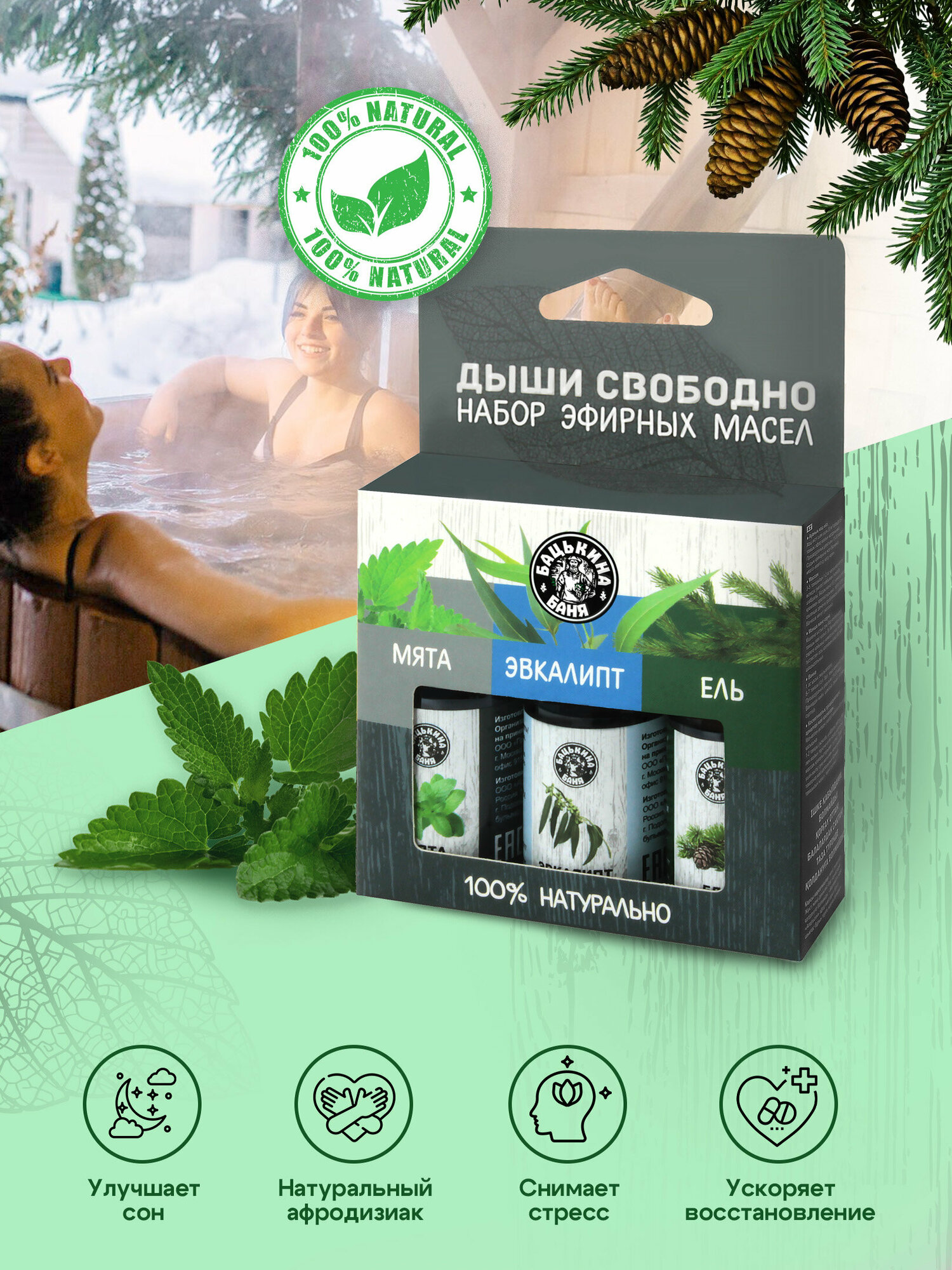 Набор эфирных масел Бацькина баня "Дыши свободно", Мята, Эвкалипт, Ель (16102)