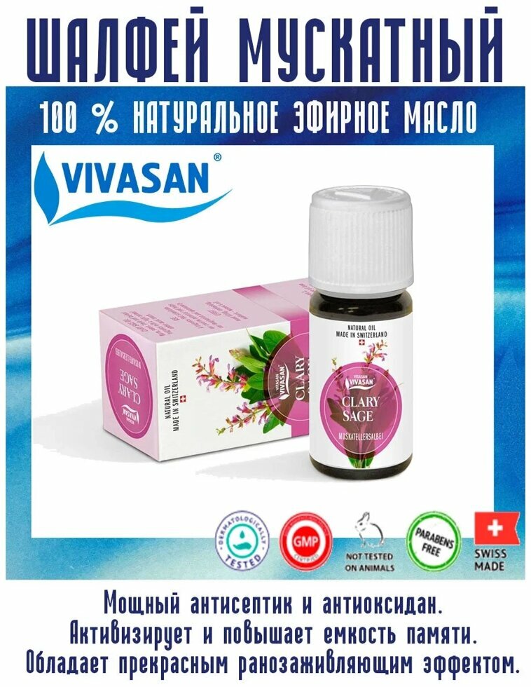 Натуральное эфирное масло Шалфея мускатного французского сильные антимикробное и противовоспалительное Vivasan, 10 мл интересное: