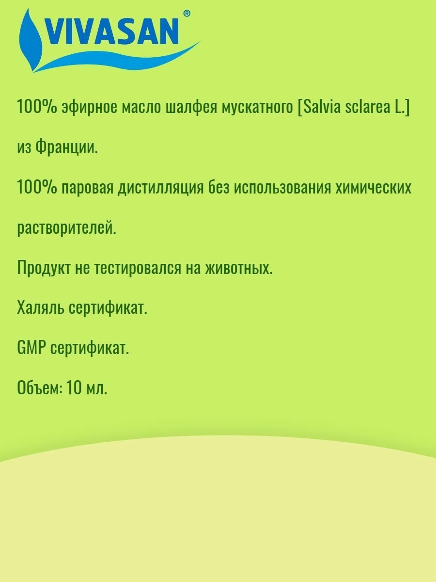 Шалфей Mускатный, эфирное масло Вивасан 10ml ( Clary Sage Vivasan )