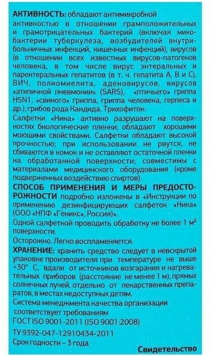 Дезинфицирующие салфетки Ника, 60 шт. Геникс