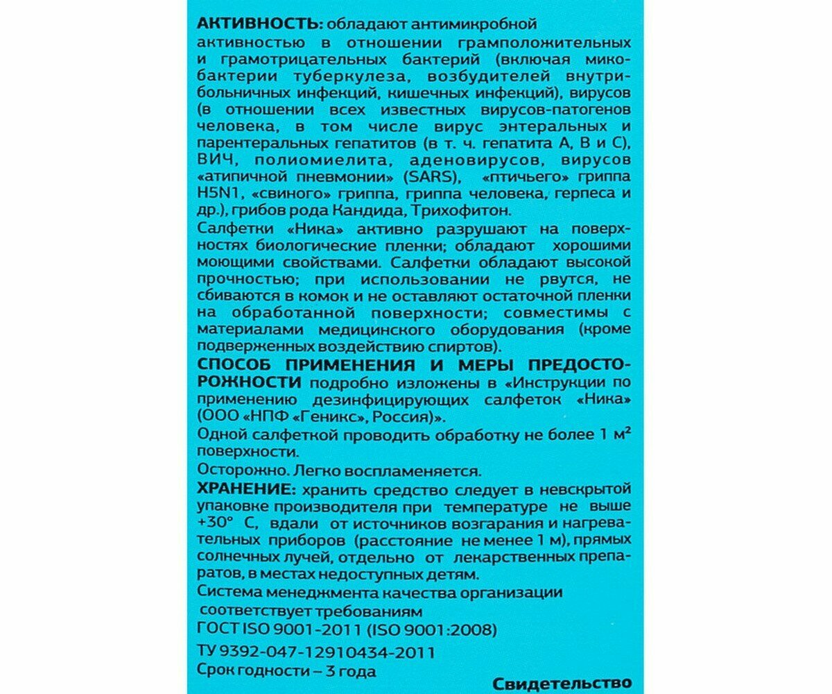 Дезинфицирующие салфетки НИКА влажные 60 шт. , для обработки рук и поверхностей