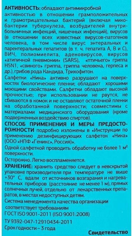 Дезинфицирующие салфетки Ника, 60 шт. Геникс