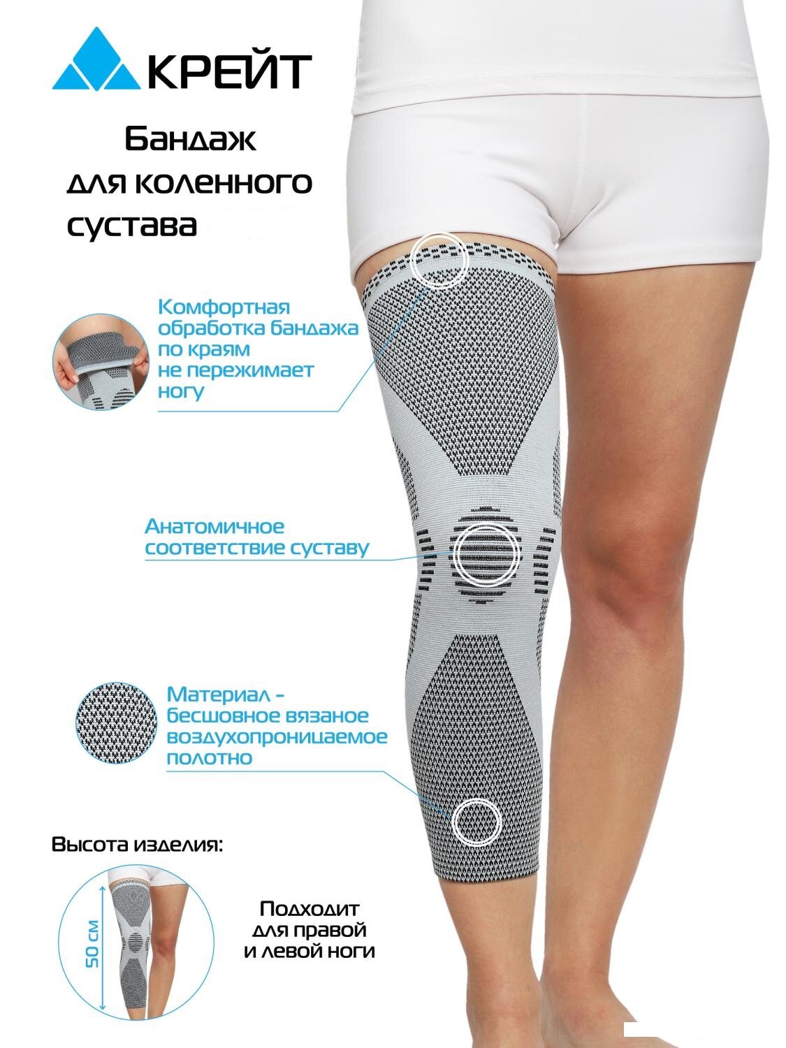 КРЕЙТ Бандаж коленный У-843, размер 4, высота 51 см, серый