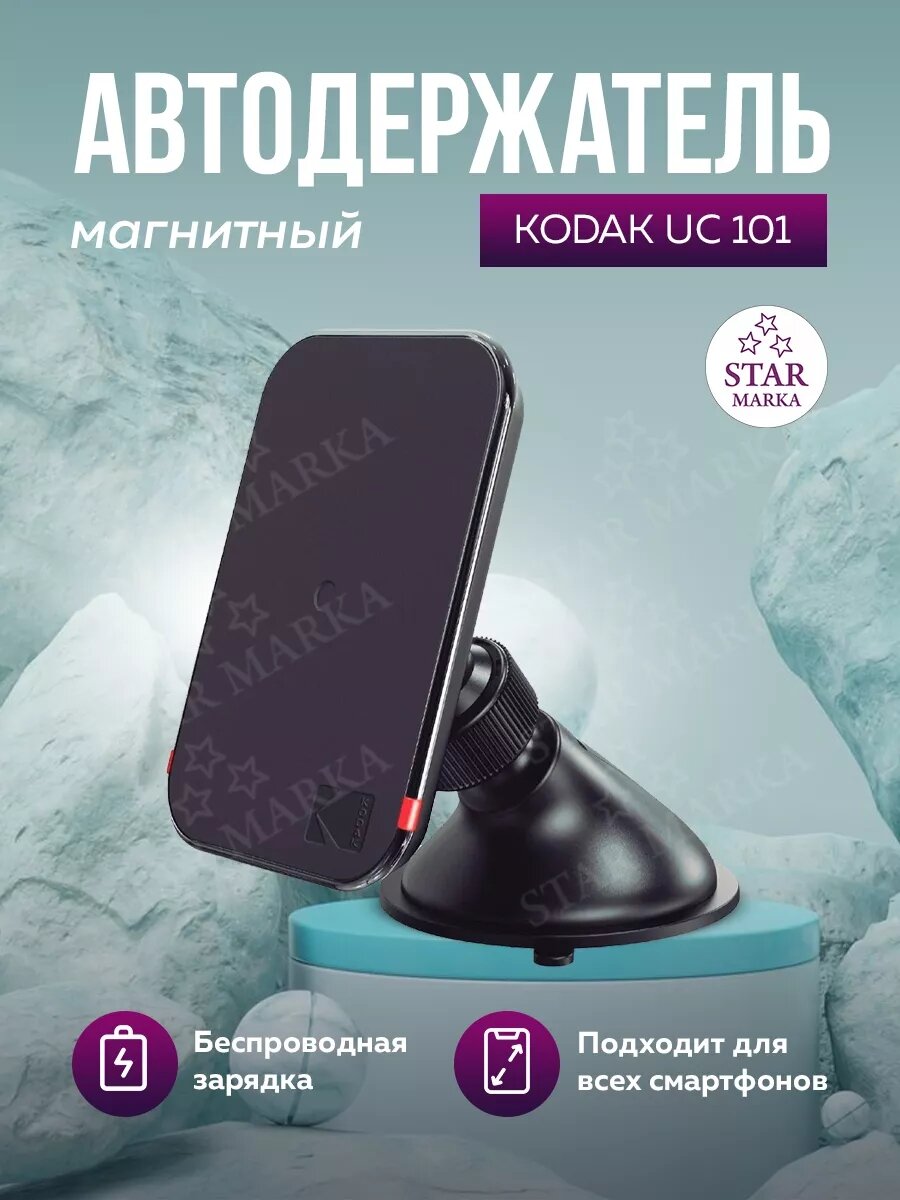 Магнитный автомобильный держатель KODAK UC101, крепление на торпеду или лобовое стекло с помощью гелевой присоски, с функцией беспроводной зарядки. Мощность: 5Вт. напряжение: 4,75-5,5В. сила тока: 1,5-2А.