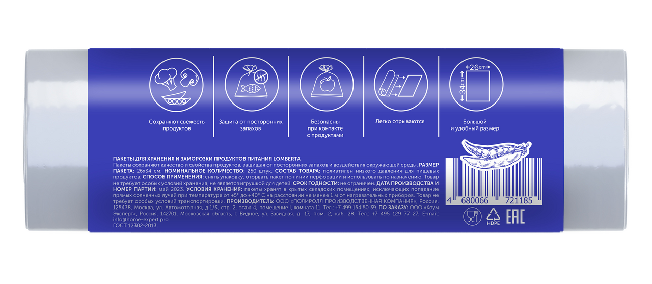 Пакеты для заморозки Lomberta, 250 шт. пакеты пищевые для хранения продуктов
