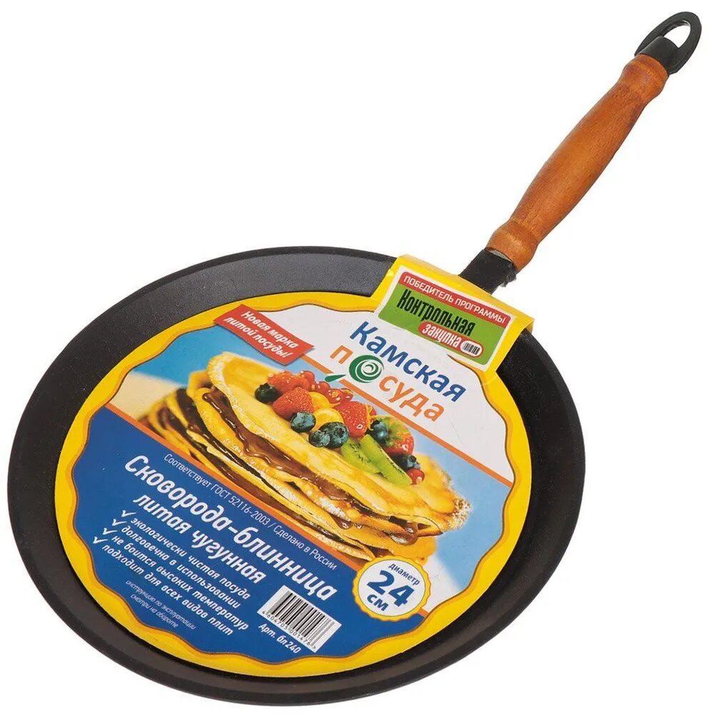 Сковорода Камская посуда литая блинная 240*15 чугунная с деревянной ручкой бл240 интересное: