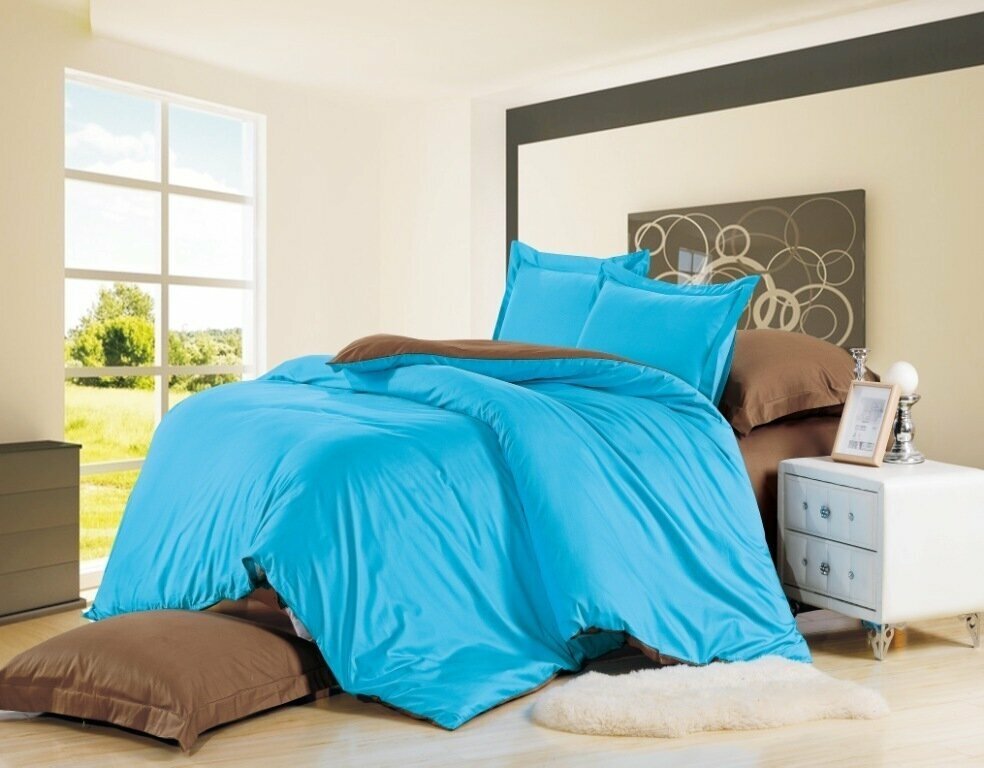 1.5 спальное постельное белье однотонное из сатина коричневое с бежевым