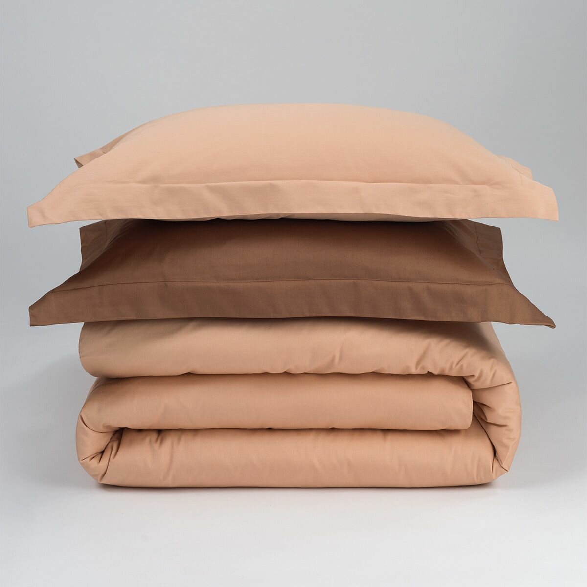 1.5 спальное постельное белье однотонное из сатина коричневое с бежевым