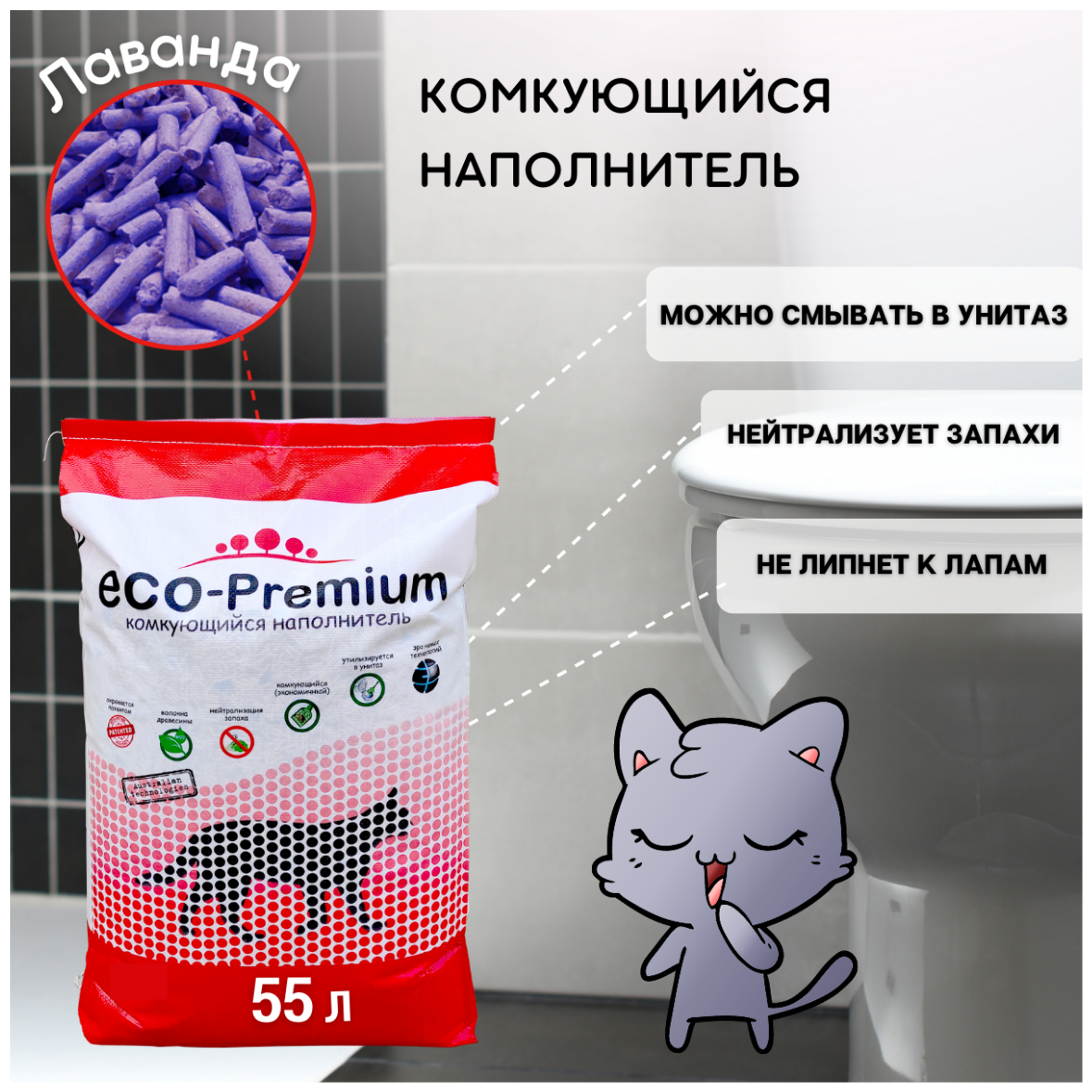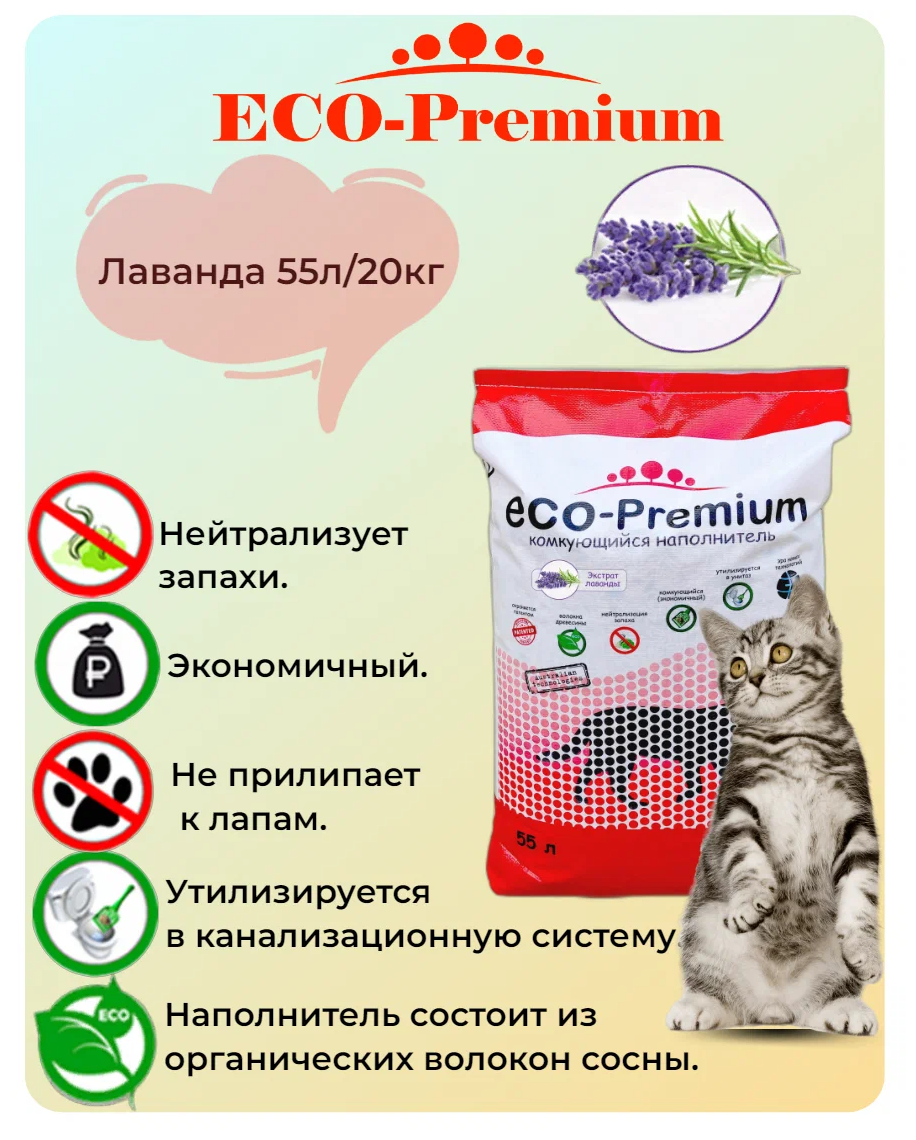 Купить Наполнитель для кошачьего туалета ECO- Premium комкующийся с экстрактом лаванды, 55л