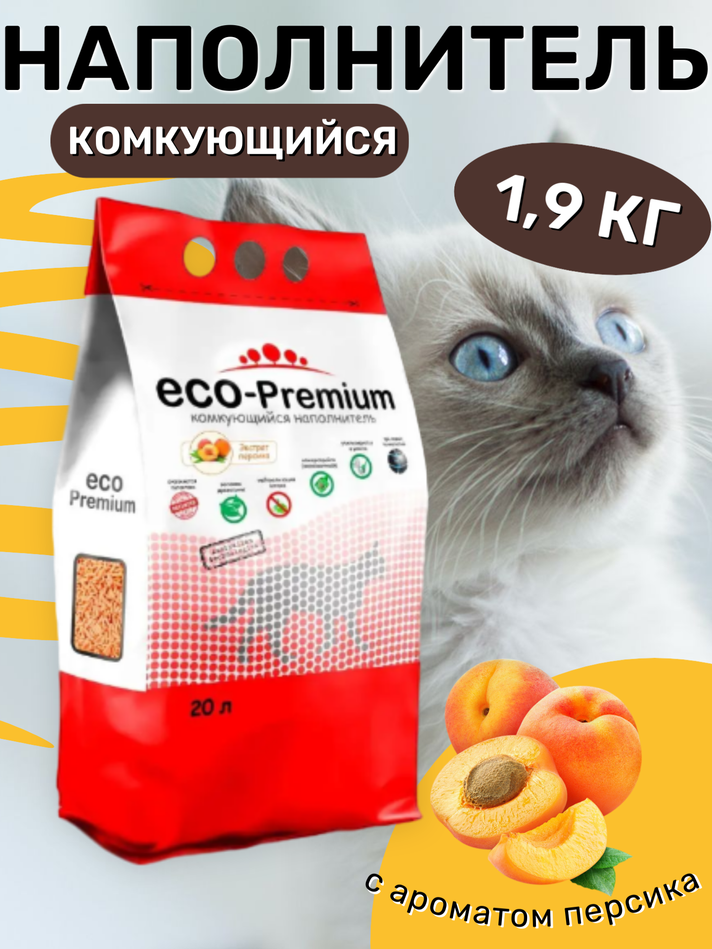 Купить Комкующийся наполнитель, древесный с запахом персика ECO-Premium, оранжевый 1,9 кг, 5 л