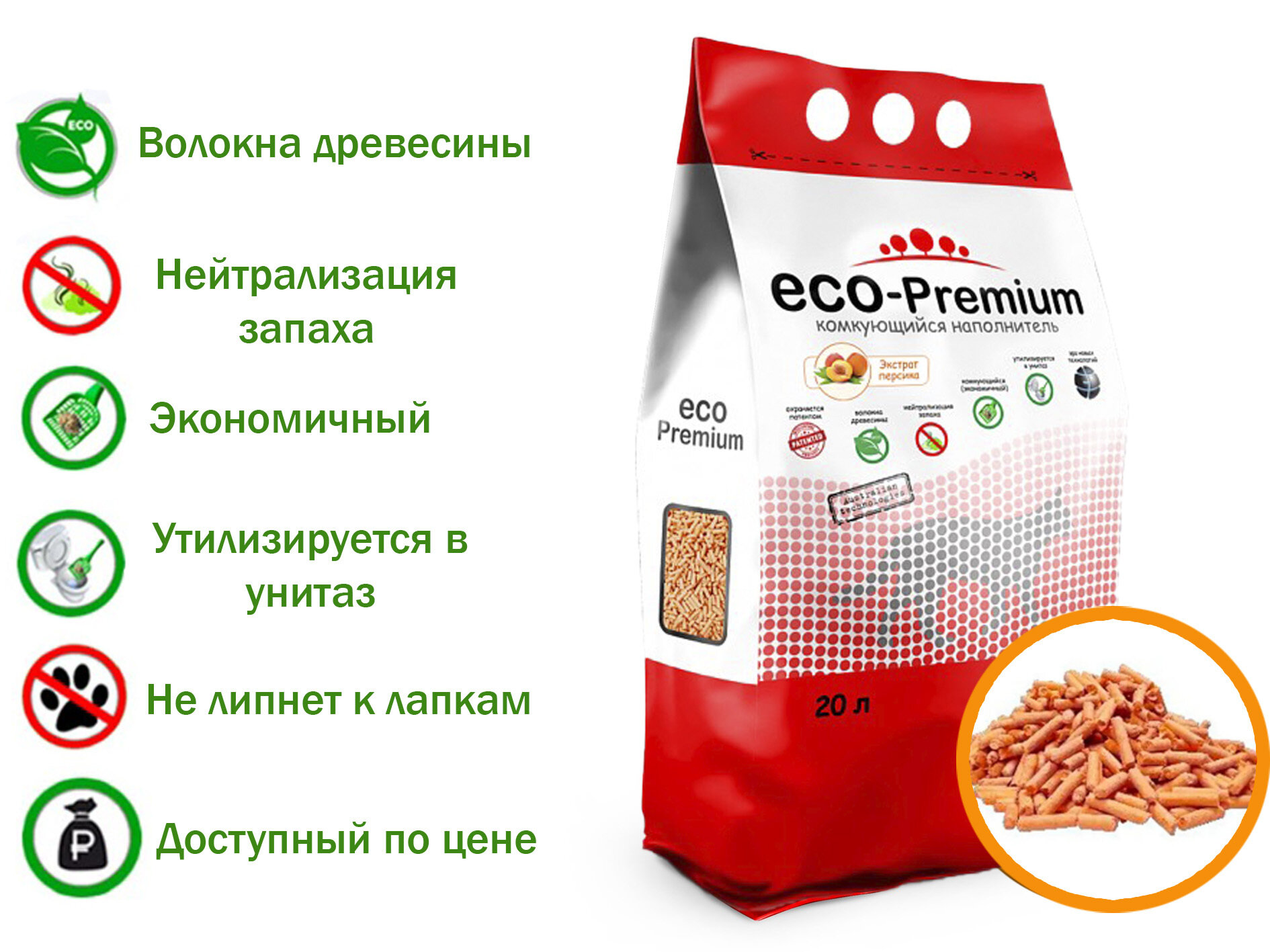 Купить Наполнитель Эко Премиум для кошачьего туалета Древесный Комкующийся с ароматом Персика 20 л (7,6 кг)