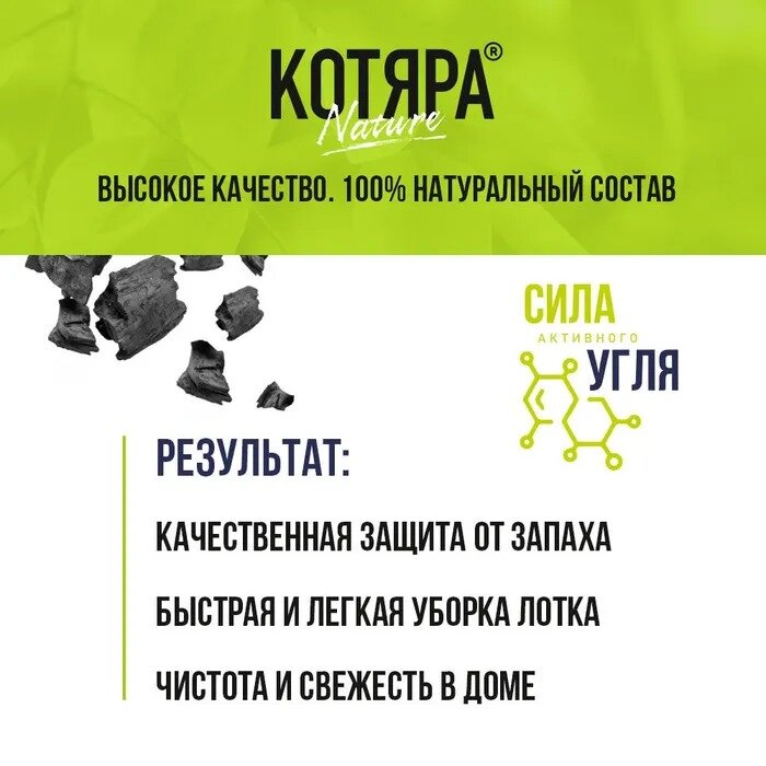 Наполнитель для кошачьих туалетов Котяра комкующийся, с активированным углем для кошачьих туалетов Nature 10 л