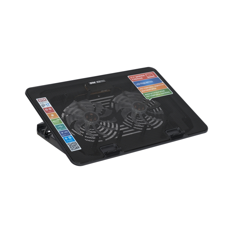 STM Подставка для ноутбука STM IP17 STM Laptop Cooling IP17 Black (17,3", 2x(125x125), 2x2 LED backlight, Black plastic+metal mesh, 3 types height adjustable )