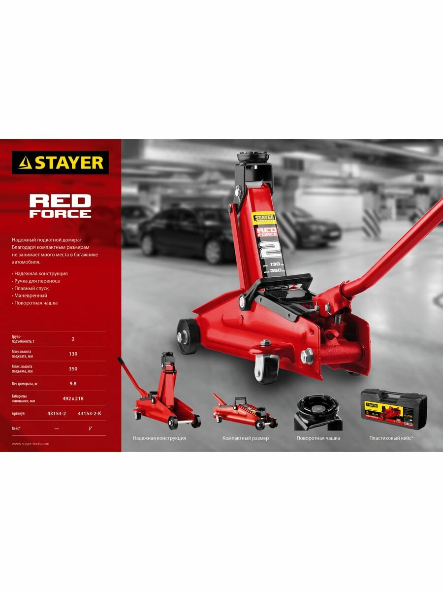Домкрат Stayer 43153-2 гидравлический подкатной red force 2т 130-350мм 43153-2 .