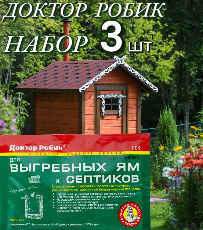 Средство для выгребных ям и септиков Доктор Робик 109, 75 гр, (3 шт)