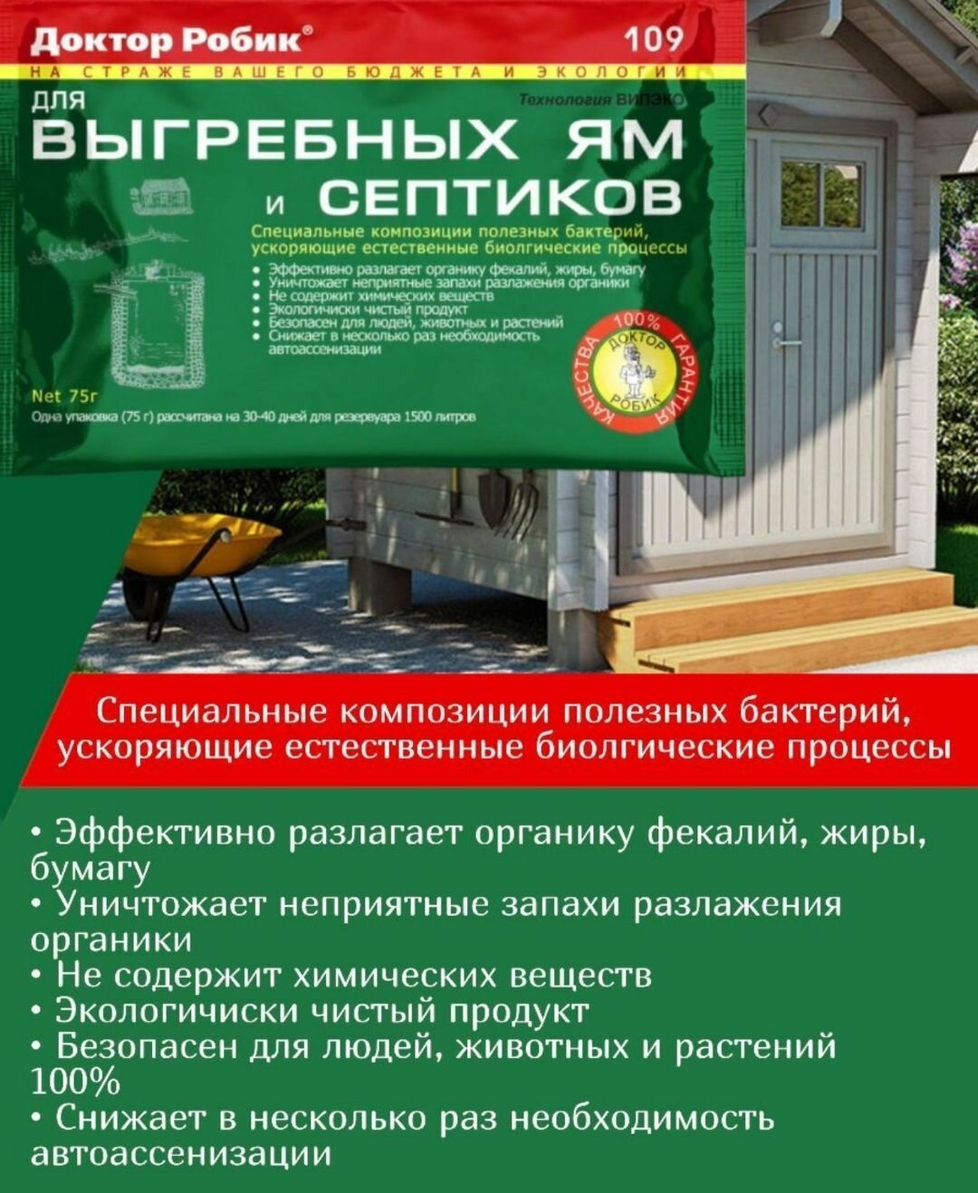 Биопрепарат Доктор Робик 75г №109 для выгр.ям и септиков