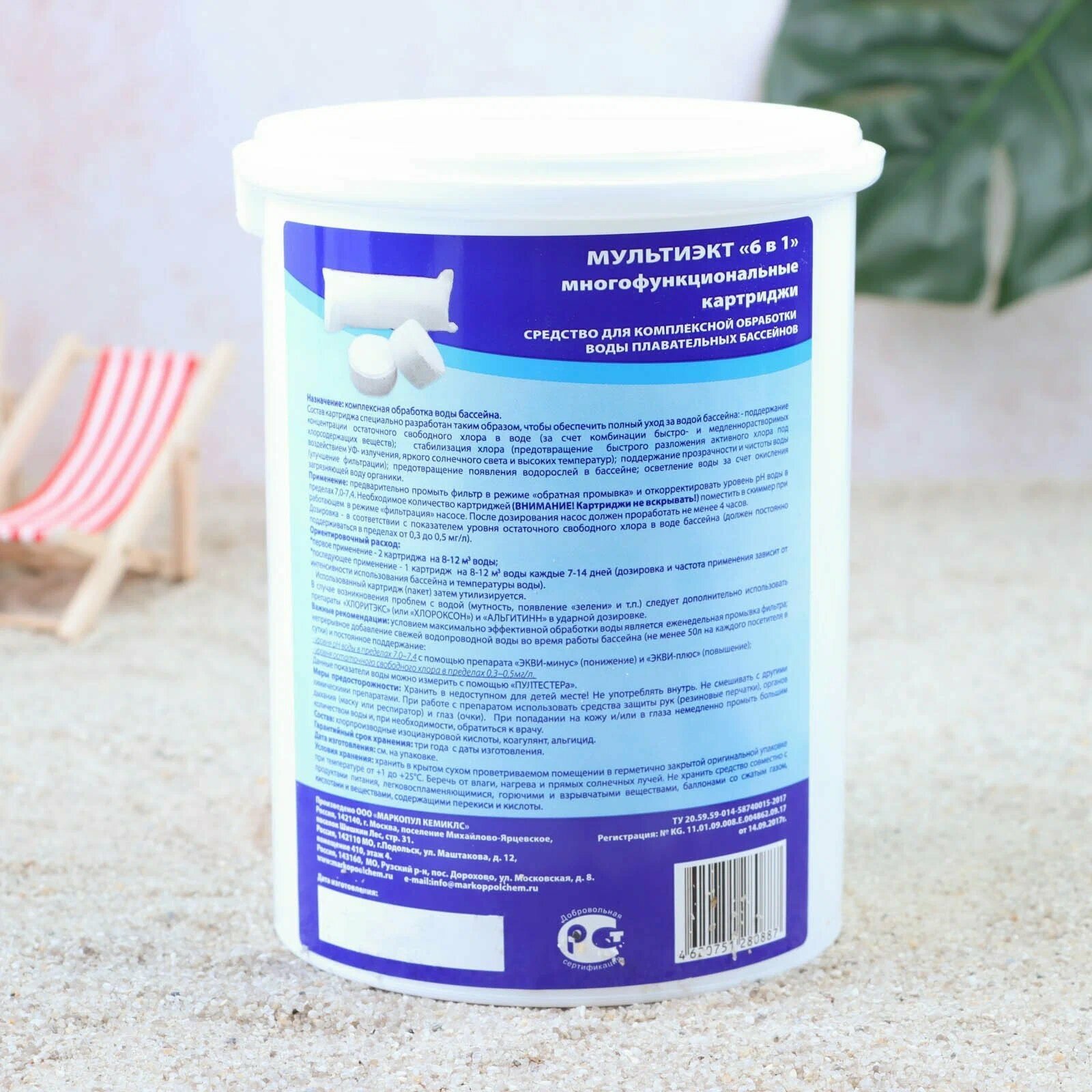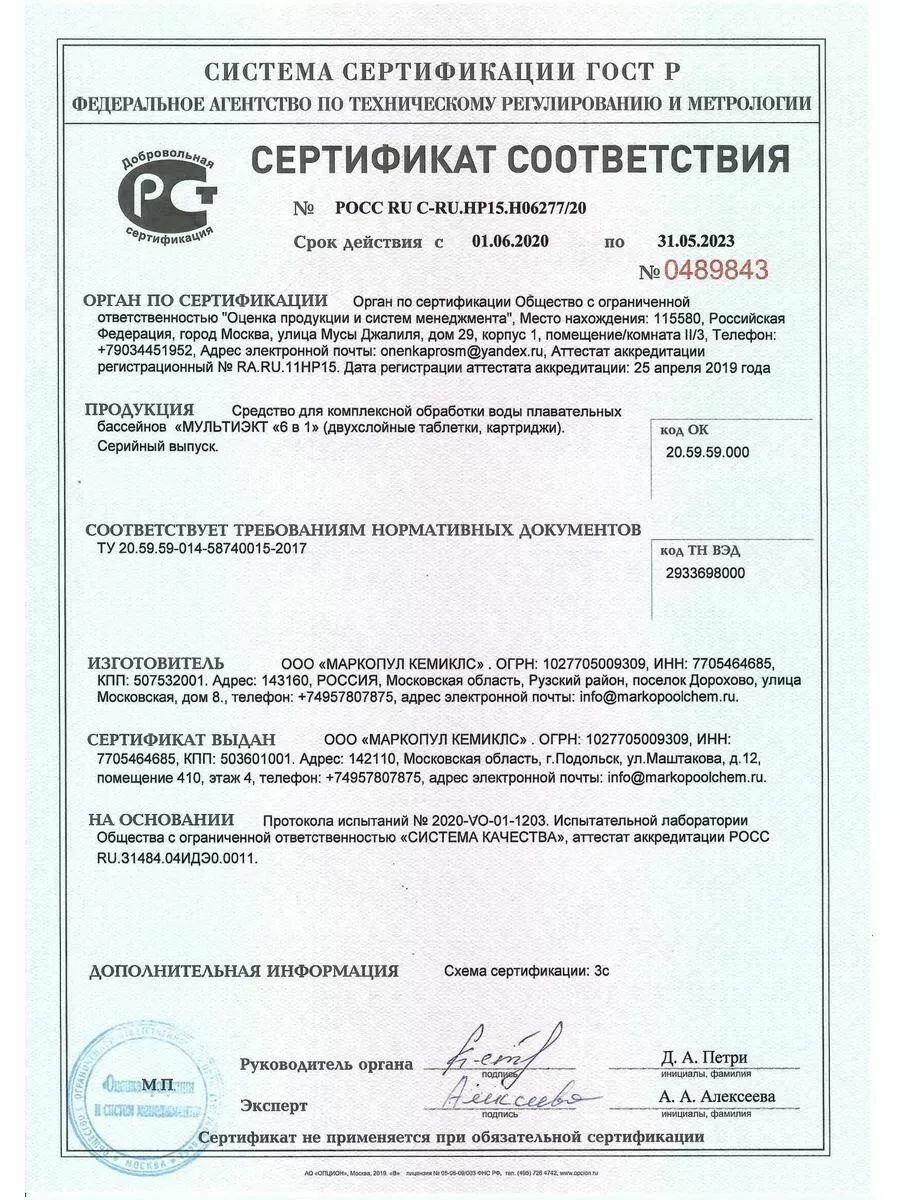 Химия для бассейна Маркопул Кэмиклс Мультиэкт 6в1 0,8кг (картриджи) 0041 .
