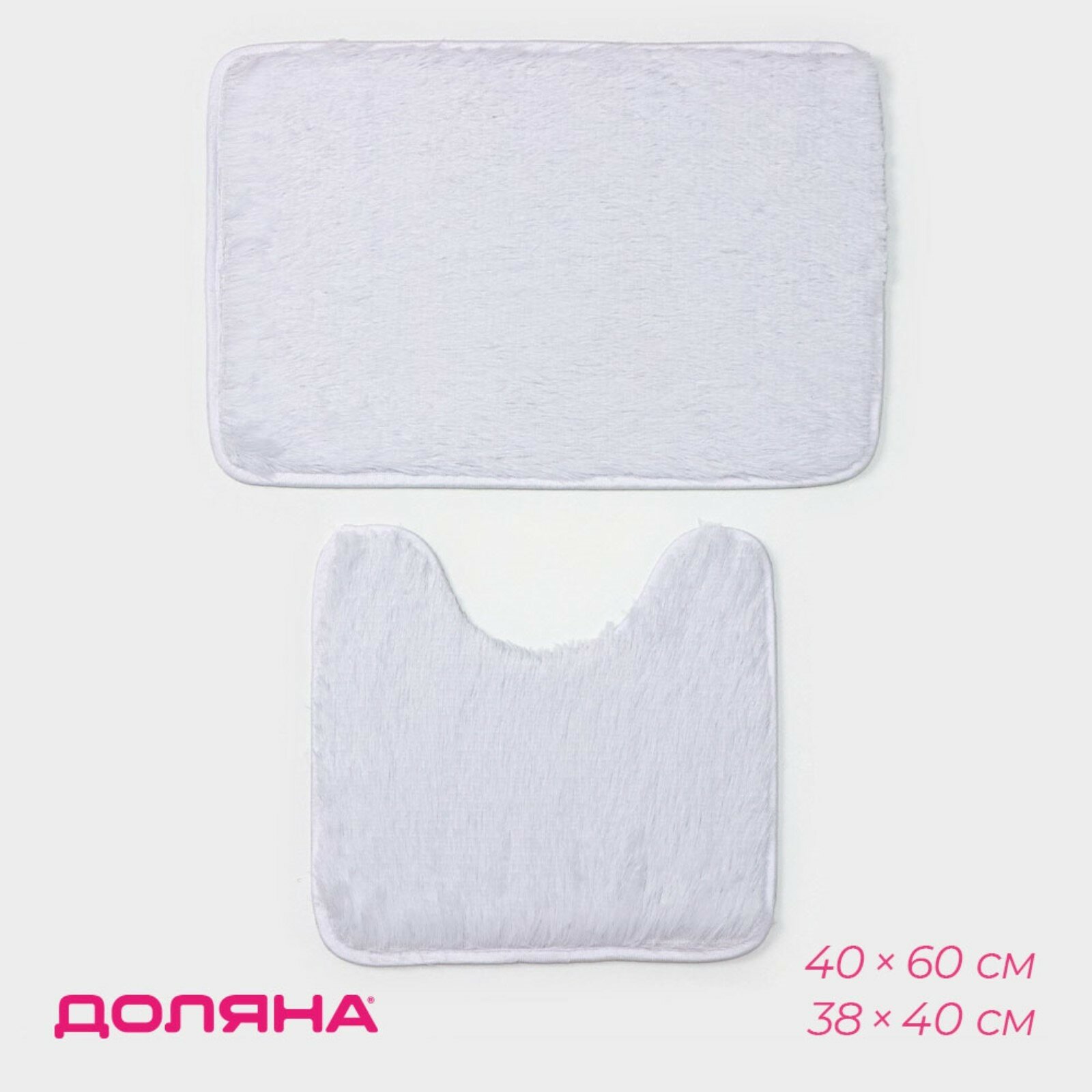 Набор ковриков для ванной и туалета Доляна Пушистик , 2 шт, 38 40 см, 40 60 см, цвет белый