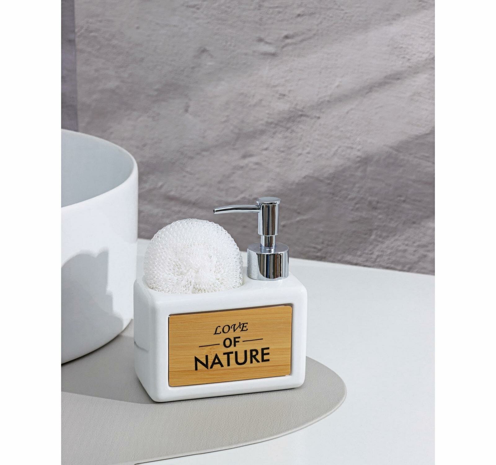 Купить Дозатор для моющего средства с подставкой для губки SAVANNA «Природа», 450 мл, цвет белый