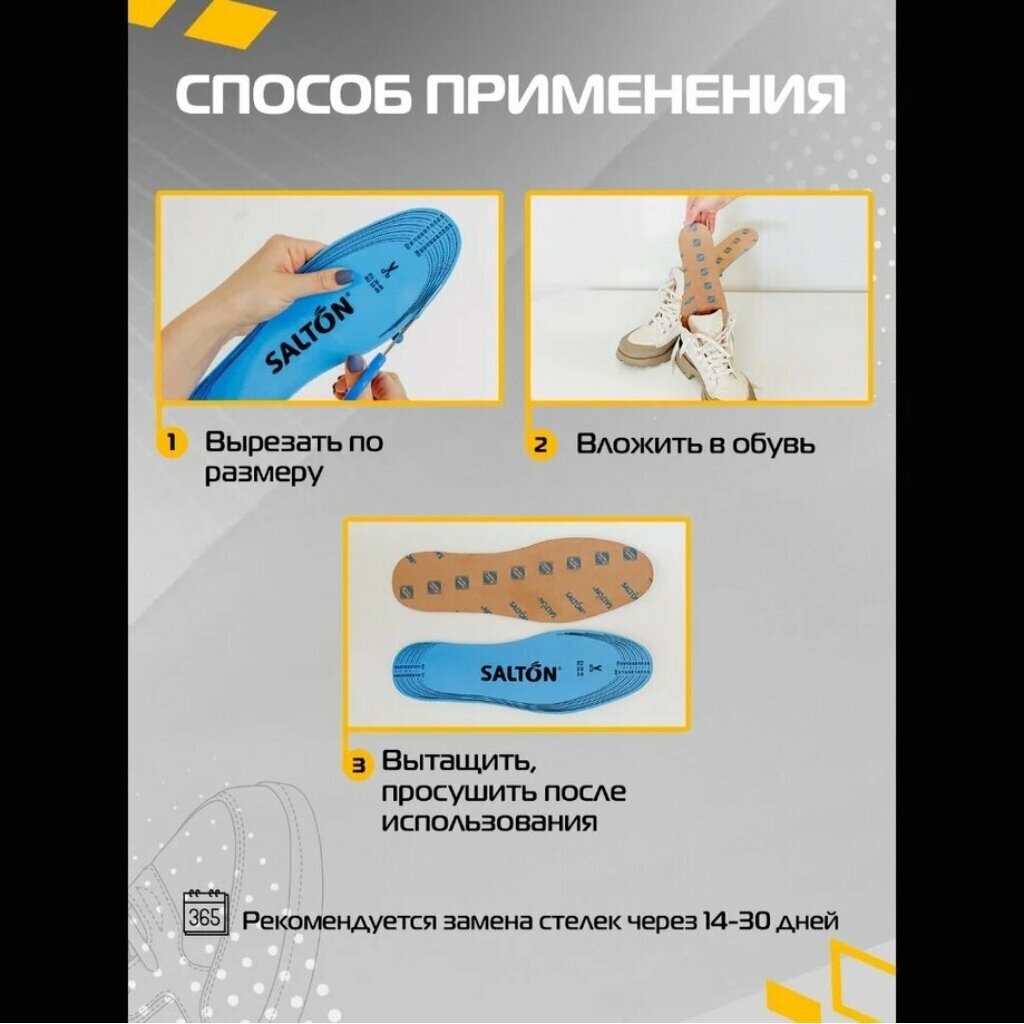 SALTON Стельки антибактериальные Тройной удар против запаха 1 шт