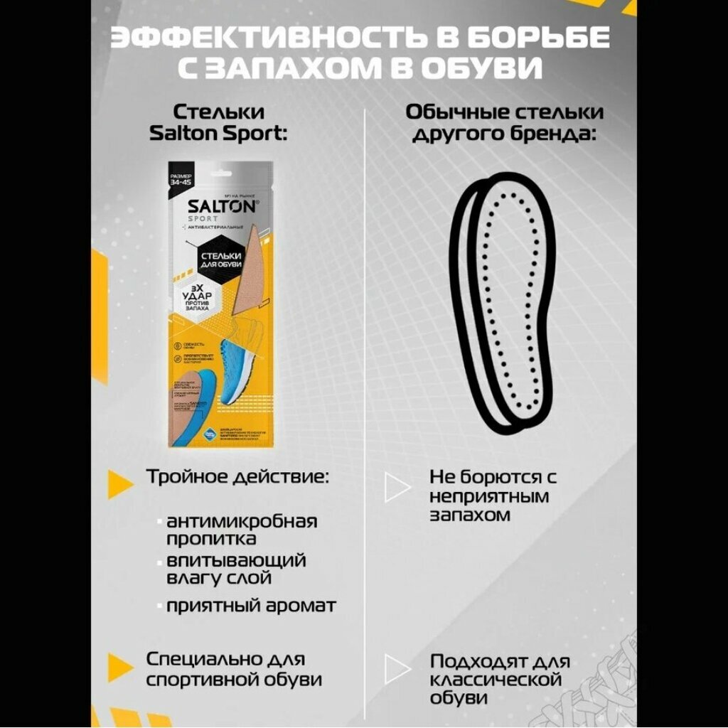 Купить SALTON Стельки Тройной удар против запаха, антибактериальные