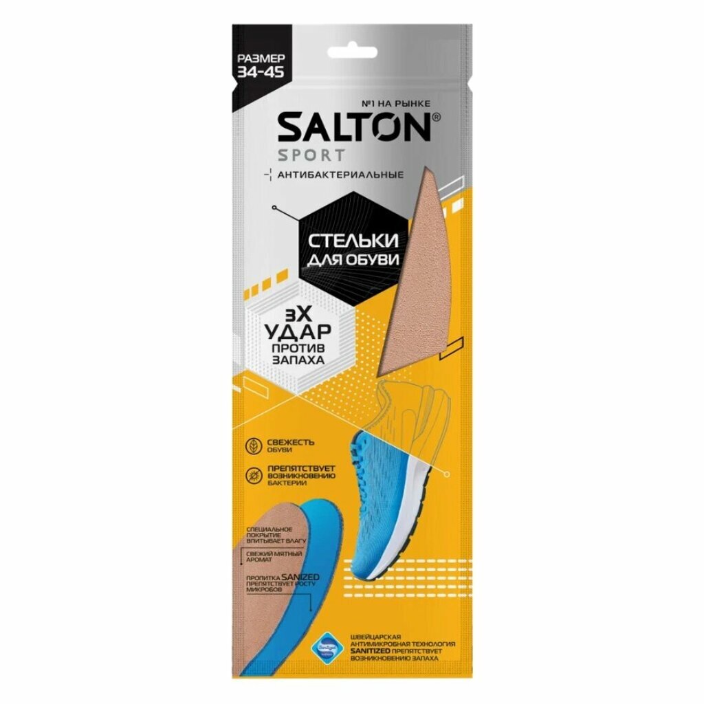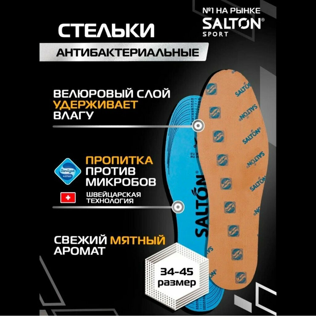 Стельки антибактериальные Salton,"Тройной удар против запаха", размер 34-45 Salton 7403703 .