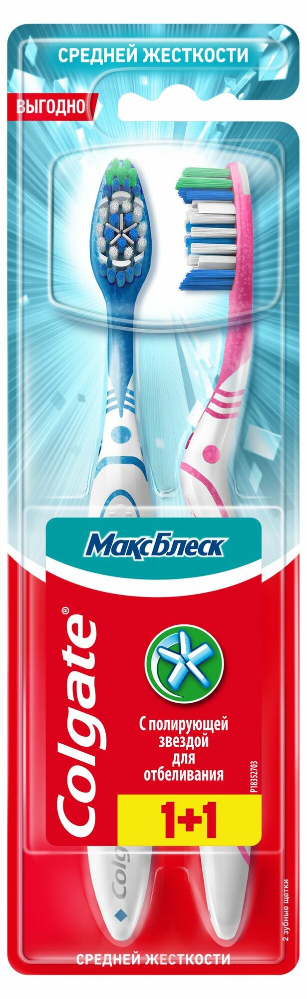 COLGATE Макс Блеск отбеливающая зубная щетка, средней жесткости, промоупаковка 1+1