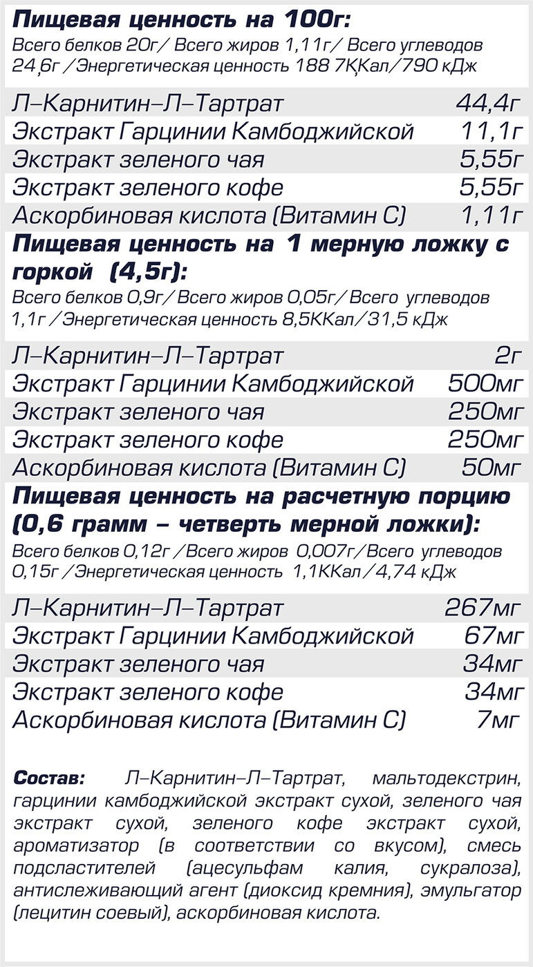 Жиросжигатель на основе л-карнитина с экстрактом гарцинии камбоджийской, для похудения, сушки и контроля аппетита, l-carnitine, киви, 200 г