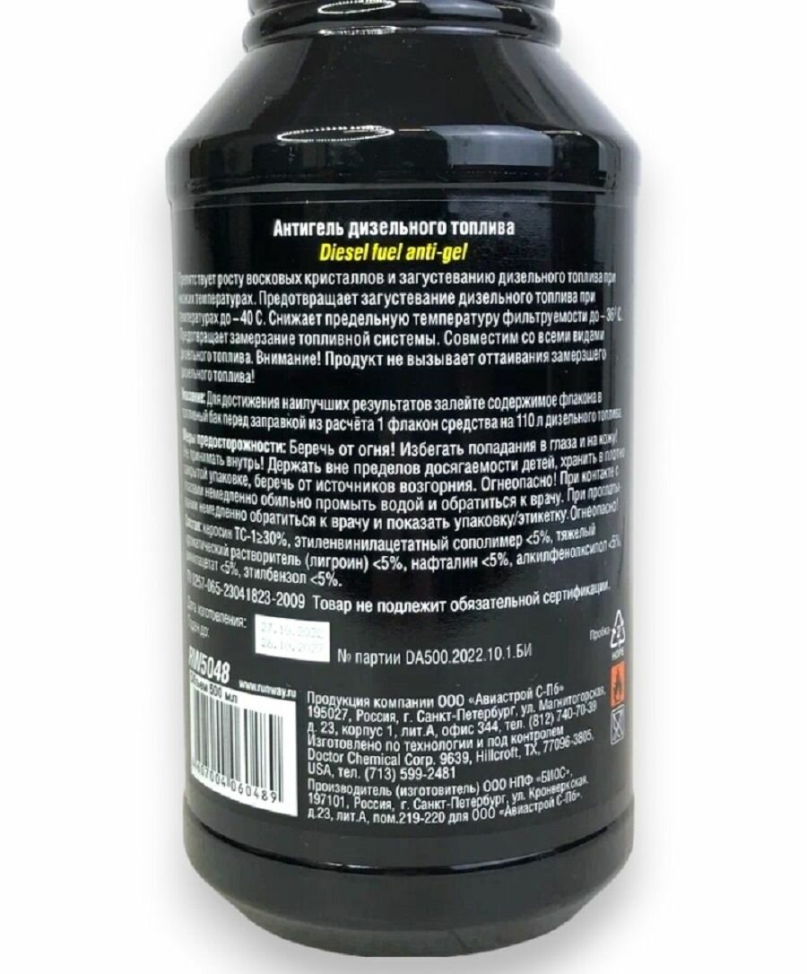 Купить RUNWAY5048 Дизельный антигель, 0,5л 12 RUNWAY RW5048