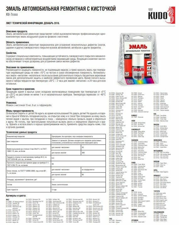 KU-70116 Эмаль авто/рем. с кисточкой (15мл.) К KUDO KU70116