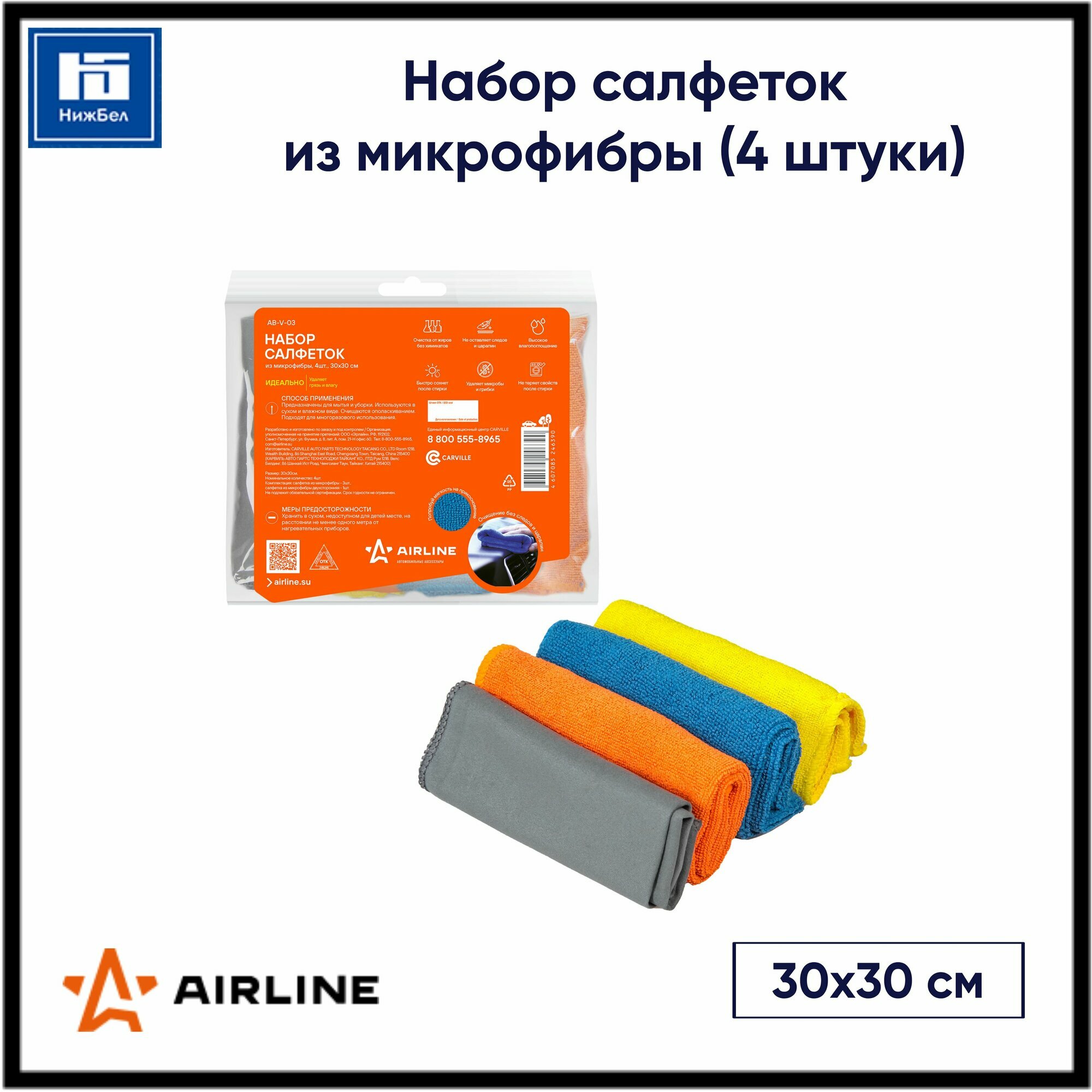 Набор Салфеток Из Микрофибры Универсальных 30x30 См Набор (4шт) Airline Ab-V-03 AIRLINE арт. AB-V-03