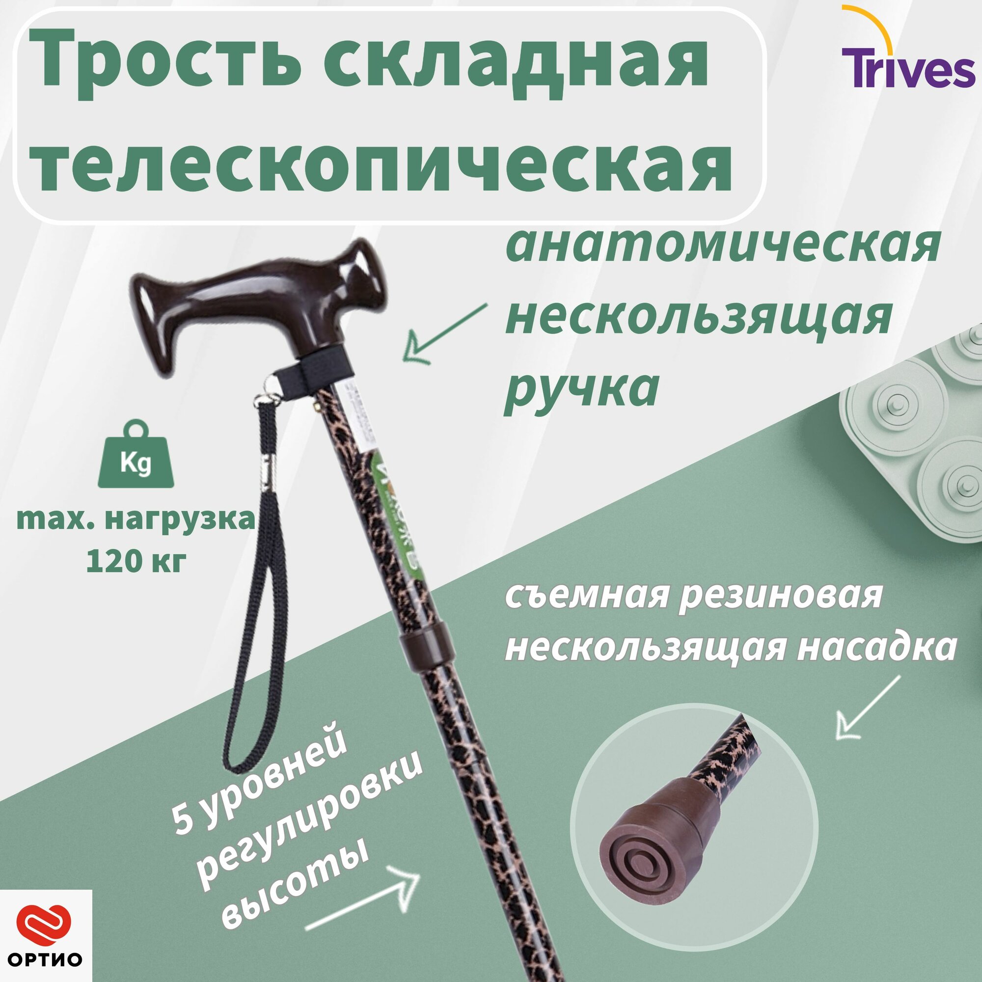 Купить Трость складная Trives серии NOVA с Т-образной ручкой и ремешком