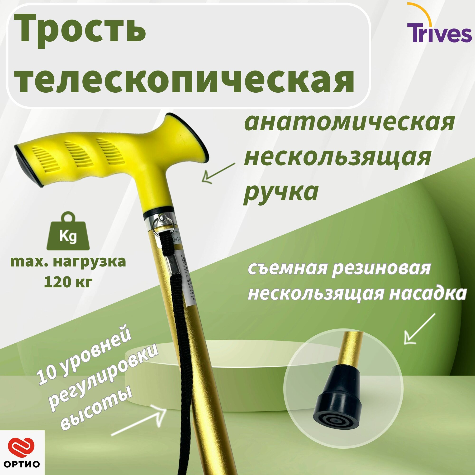 Трость телескопическая Trives серии NOVA с анатомической ручкой и ремешком, цвет желтый