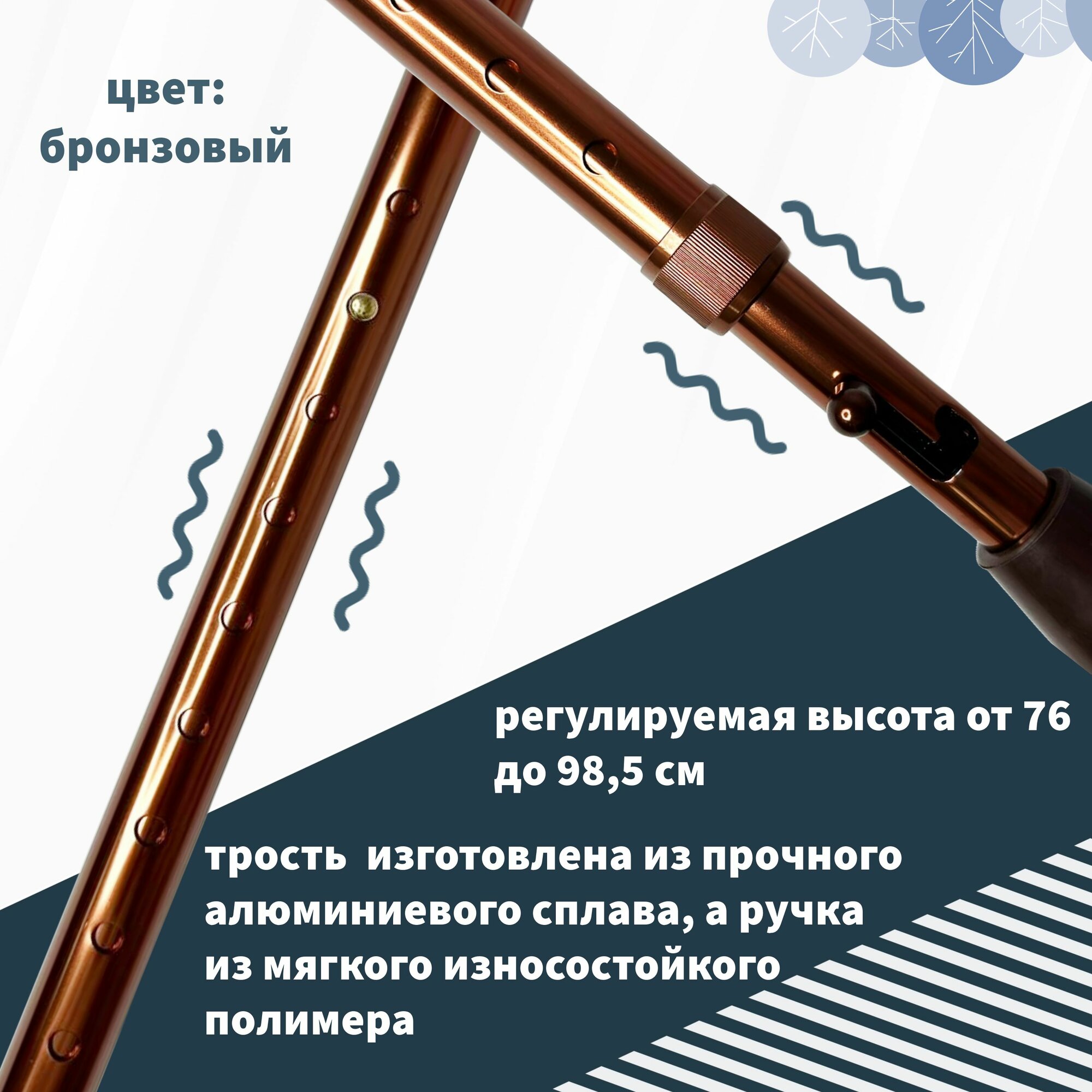 Трость Trives серии NOVA регулируемая по высоте с мягкой ручкой и ремешком, цвет бронза