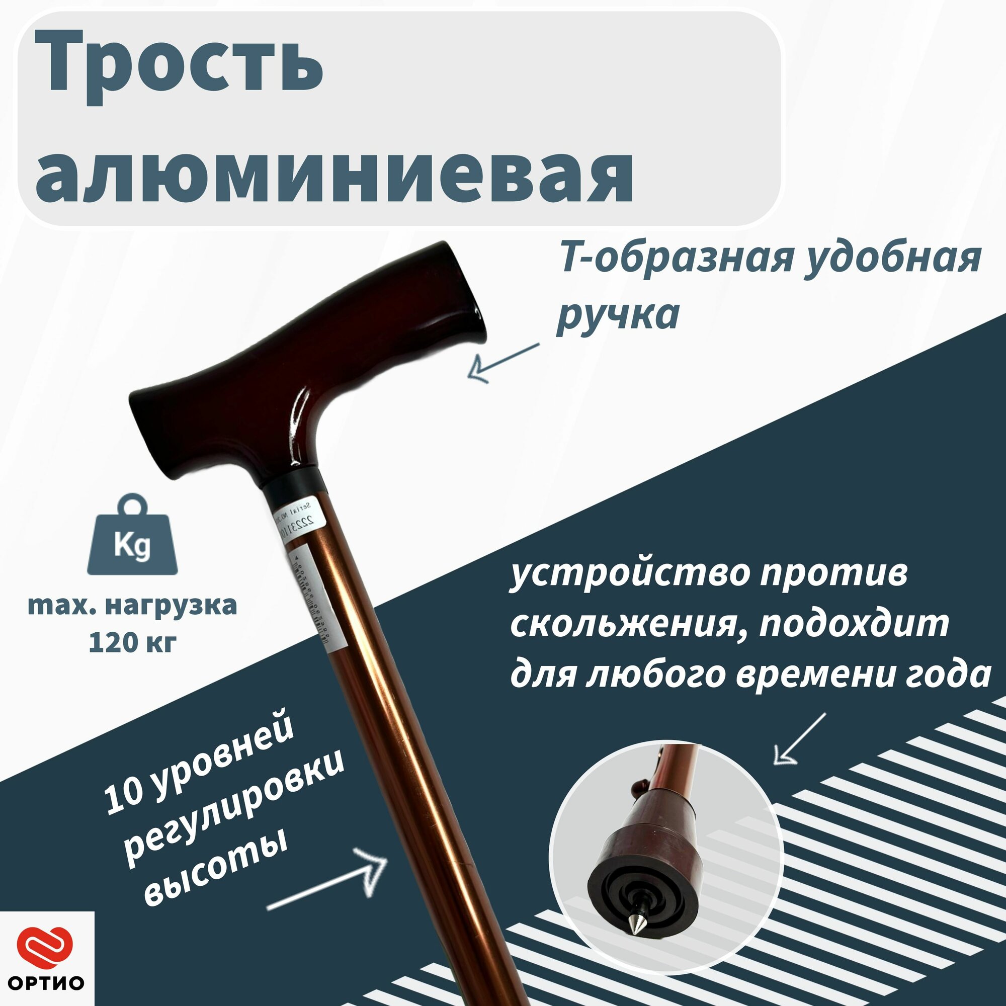 Трость опорная Trives серии NOVA с Т-образной ручкой и ремешком