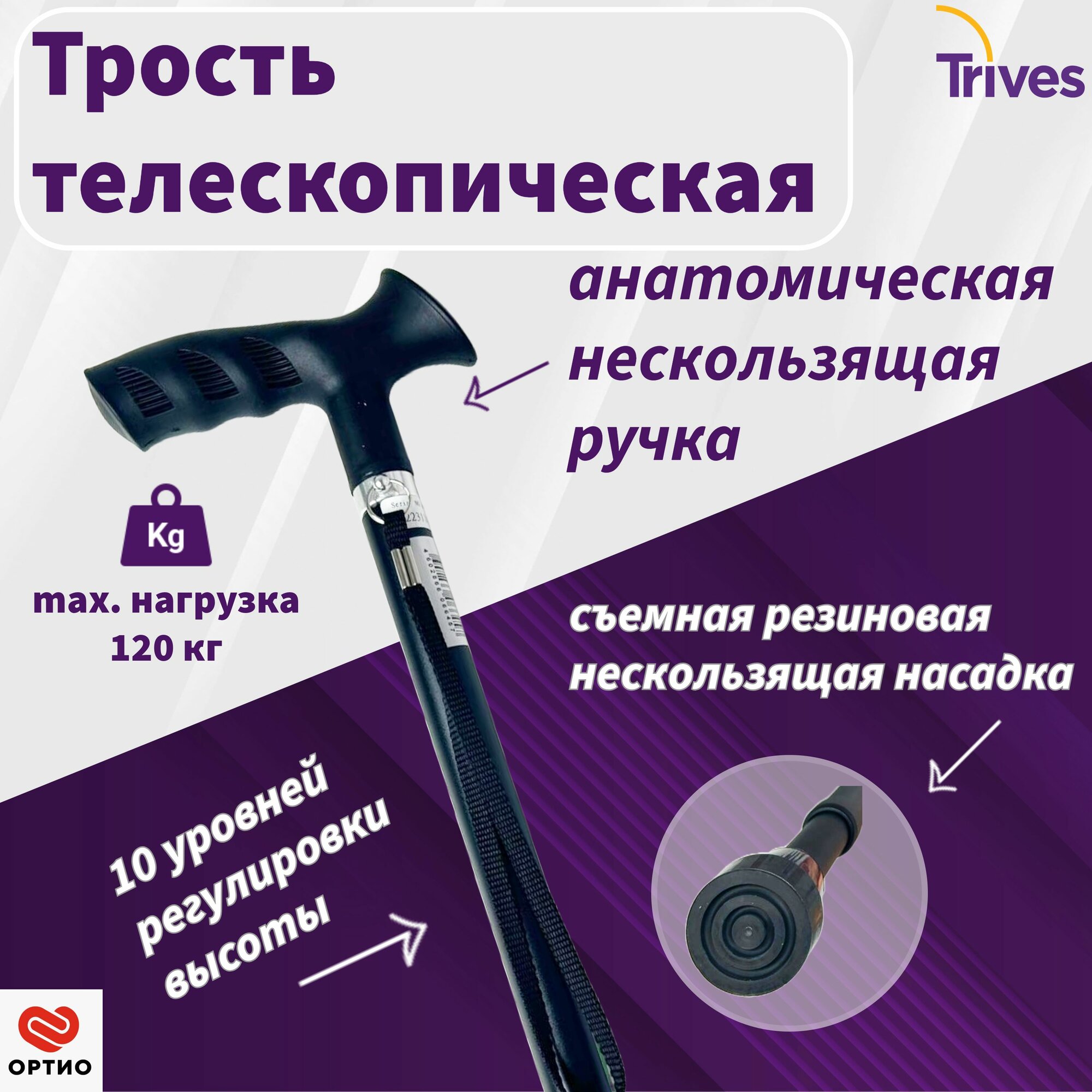Трость телескопическая с ортопедической ручкой Тривес CA833L4